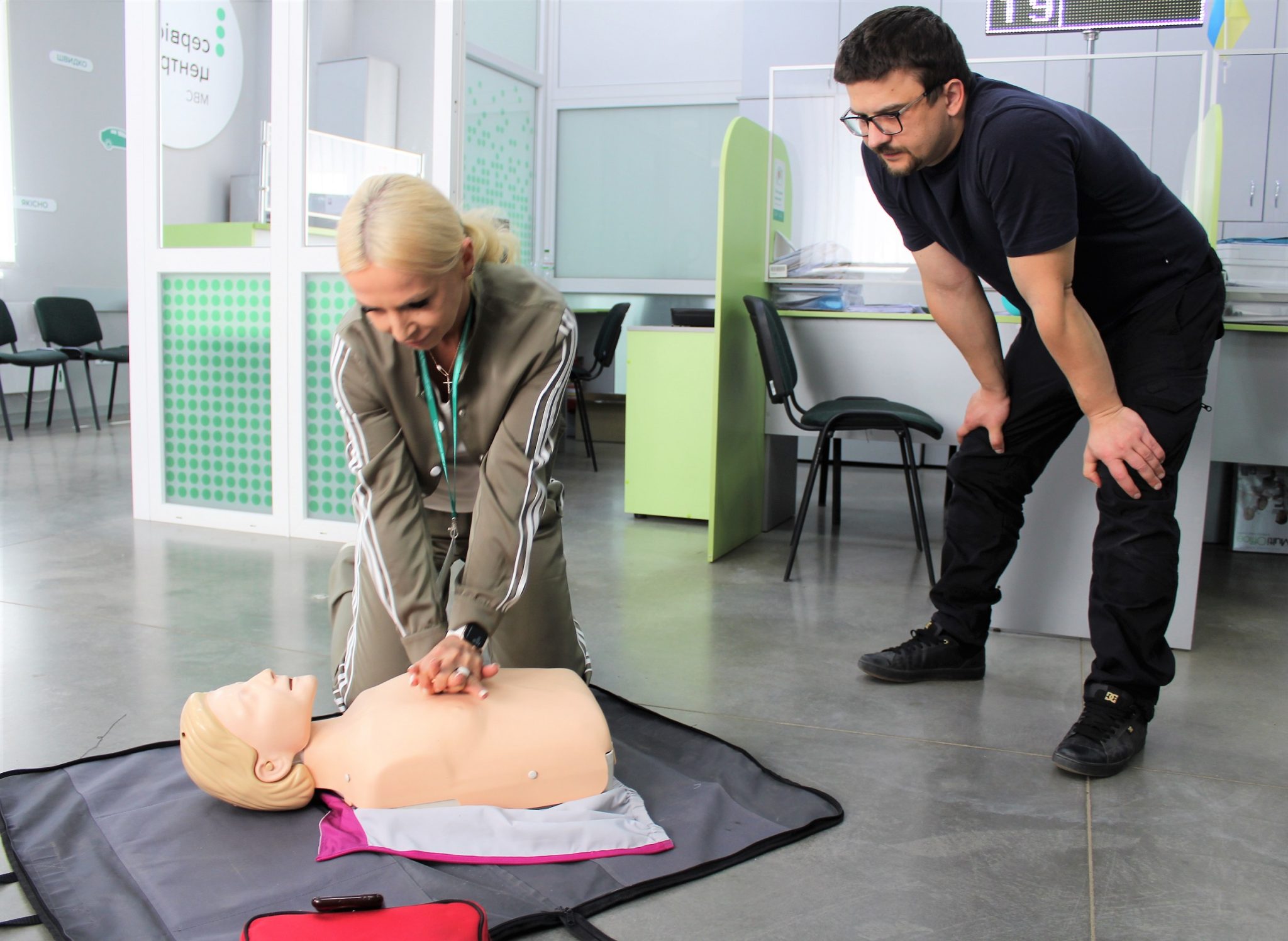 Говорили про особисту безпеку та виклик допомоги. Навчалися діагностувати стан потерпілого, проводити компресію на грудну клітку та штучну вентиляцію легень. Окрім того, працівники сервісних центрів МВС Рівненщини опанували навики користування автоматичним зовнішнім дефібрилятором та як поводитися з потерпілим без свідомості й переводити його в стабільне положення. Розглянули тактику надання допомоги при повній чи частковій обструкції дихальних шляхів. Також поговорили про критичні кровотечі та методи їх зупинки. Практикувались надавати першу допомогу самому собі при кровотечах.