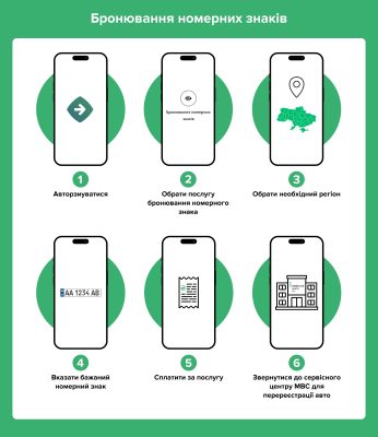 Бронювання номерних знаків онлайн. У Кабінеті водія можливо обрати та забронювати номерний знак терміном на 10 днів. Вартість послуги: