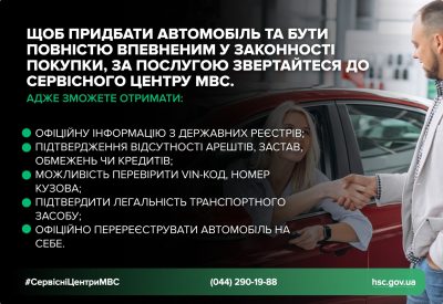 У сервісних центрах МВС також передбачено експертне дослідження автомобіля – перевірку справжності ідентифікаційних номерів транспортного засобу та реєстраційних документів. Це допомагає виявити можливі факти знищення, підроблення або змін номерів вузлів і агрегатів чи реєстраційних документів, що супроводжують авто.
