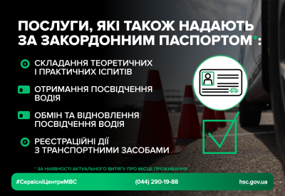 Детальніша інформація щодо отримання послуг пов’язаних із реєстраційними діями з транспортними засобами, розміщена на нашому сайті за посиланням. Детальніше ознайомитись з умовами отримання, обміну та відновлення посвідчення водія можливо тут.