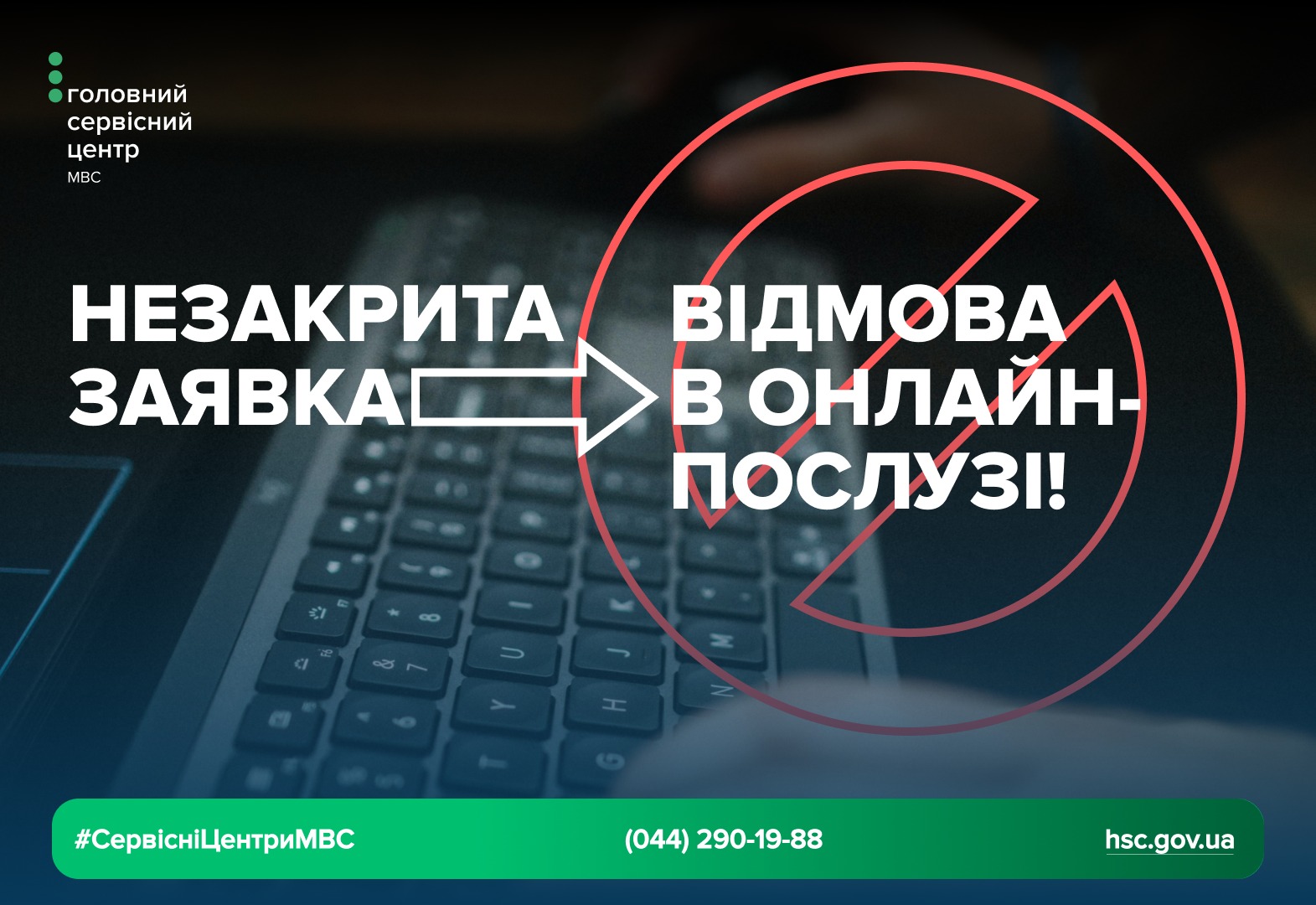 У протилежному випадку отримання послуг в іншому сервісному центрі МВС буде недоступним доти, доки попередня заявка не буде закрита. Крім того, відкриті й незавершені заявки можуть стати причиною відмов у наданні онлайн-послуг через Кабінет водія чи застосунок Дія.