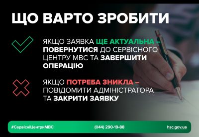 Пам’ятайте: незакрита заявка – це не лише ваш додатковий час, а й час інших відвідувачів, які могли б отримати послугу.