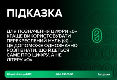 - для позначення цифри «0» краще використовувати перекреслений нуль (∅) – це допоможе однозначно розпізнати, що йдеться саме про цифру, а не літеру «О».