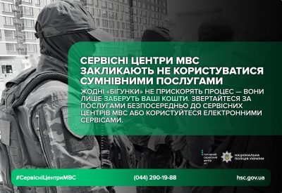 Головний сервісний центр МВС закликає громадян не користуватися послугами посередників. Жодні «бігунки» чи «свої люди» не прискорять процедуру — вони лише заберуть ваші кошти.
