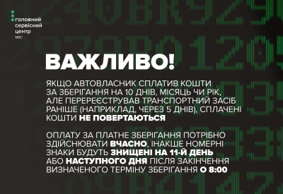 Оплату за платне зберігання потрібно здійснювати вчасно, інакше номерні знаки будуть знищені на 11-й день або наступного дня після закінчення визначеного терміну зберігання о 8:00.