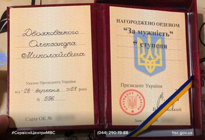 За службу на передовій Олександр отримав Орден Мужності ІІІ ступеня. У щоденній роботі він не акцентує увагу на нагородах – просто працює на користь держави, виконує свої обов’язки в сервісному центрі МВС. Спокійно. Уважно. Впевнено.