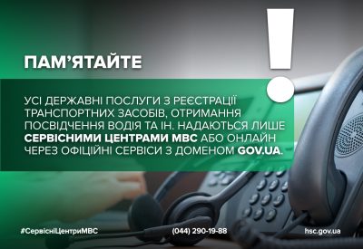- Отримуйте послуги лише через офіційні ресурси МВС — сайт hsc.gov.ua, застосунок «Дія» або «Кабінет водія».