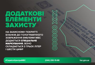 Починаючи з серпня 2024 року сервісні центри МВС почали видавати бланки свідоцтва з додатковими елементами для уникнення підробок. На захисному покритті до голографічного зображення емблеми МВС додалось спеціальне маркування. Воно складається з трьох літер і шести цифр.