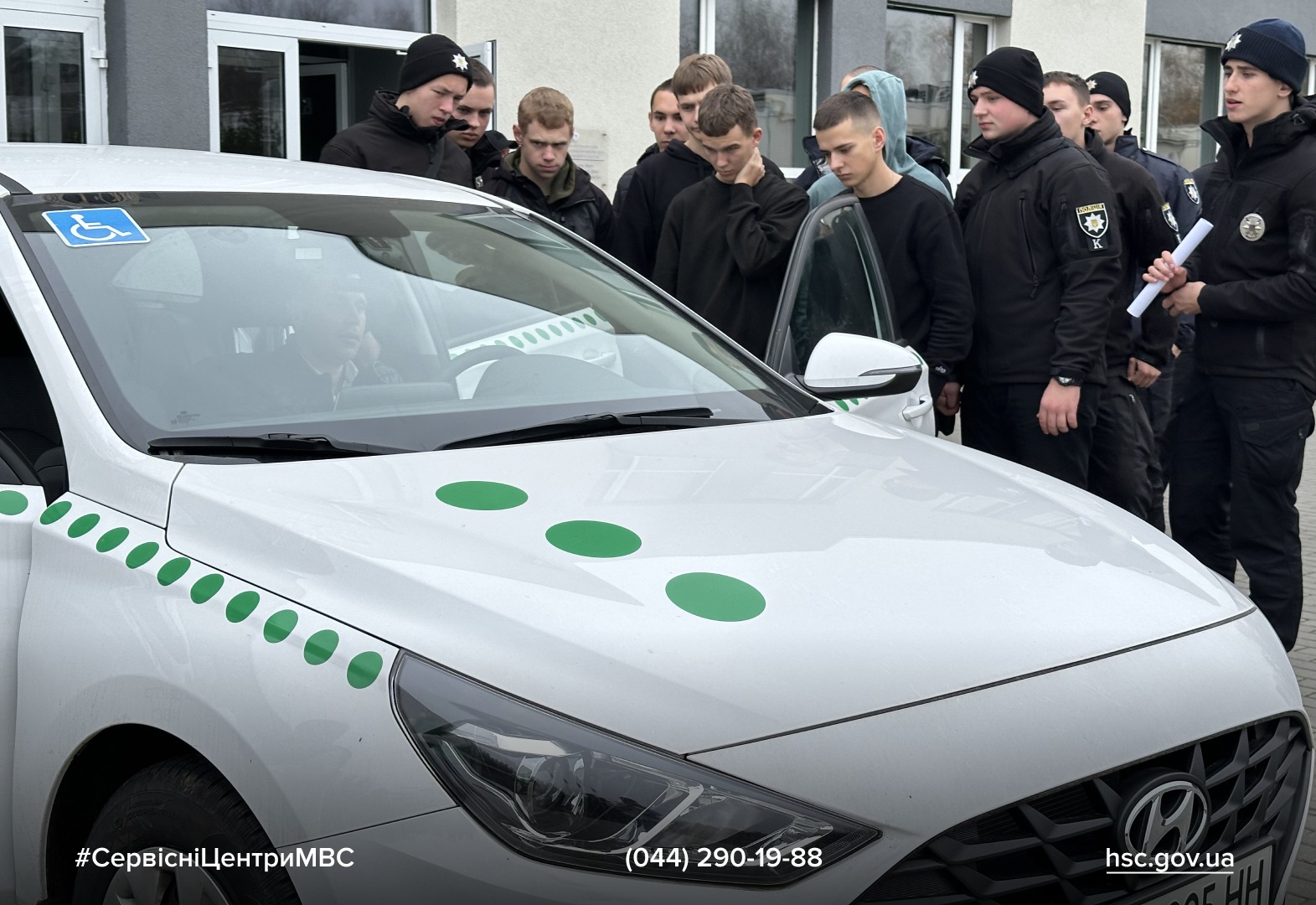 Завершальним етапом став огляд автомобіля для практичного іспиту з водіння, під час якого слухачі дізналися про роботу системи відеофіксації, оцінку дій кандидата та вимоги до майбутніх водіїв.