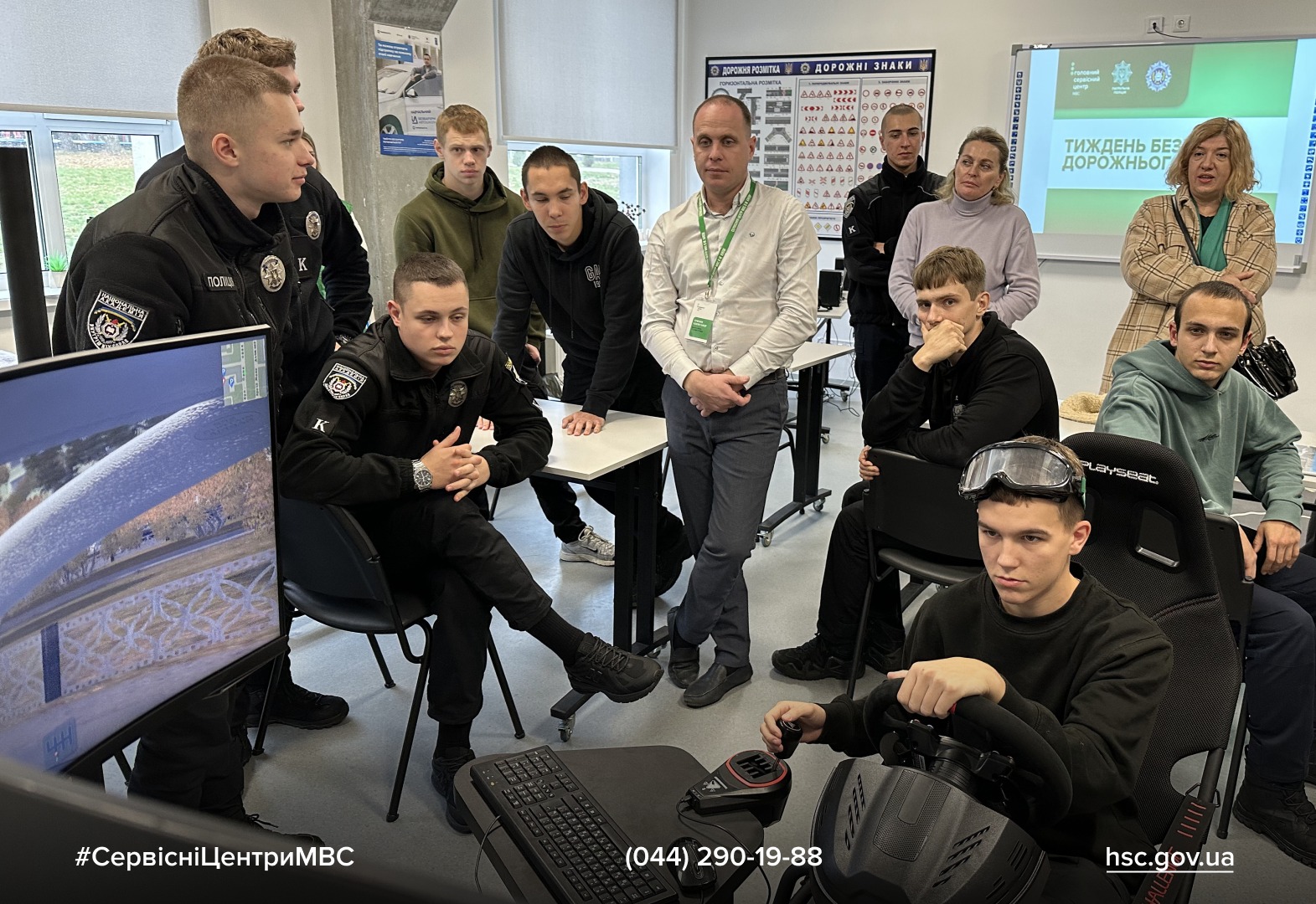 Особливий інтерес викликала практична частина заходу. Слухачі Національної академії внутрішніх справ випробували автотренажер що використовується при навчанні водінню, що дозволяє віртуально відтворити дорожні умови та різні погодні ситуації, а також відпрацювати навички керування автомобілем. Весь процес супроводжував екзаменатор сервісного центру МВС, який коментував дії «водіїв» і звертав увагу на типові помилки, що трапляються під час складання іспитів.