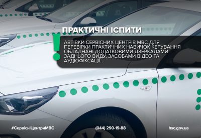 Автівки сервісних центрів МВС для перевірки практичних навичок керування обладнані додатковими дзеркалами заднього виду, засобами відео- та аудіофіксації. Також автопарк екзаменаційних хабів періодично оновлюється новими сучасними автівками категорії В. Майбутні кермувальники можуть у вільному доступі ознайомитись із переліком автомобілів для складання практичних іспитів, в якому зазначено інформацію про марку автомобіля, рік випуску, тип коробки передач та в якому сервісному центрі МВС він знаходиться.