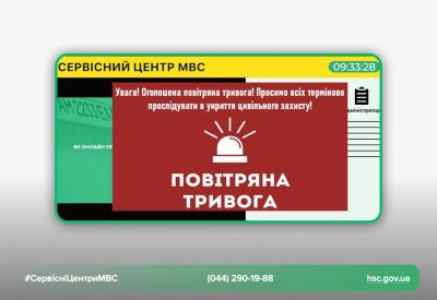 Для належного інформування відвідувачів у сервісних центрах МВС працює система цифрового звукового сповіщення про настання чи відбій повітряної тривоги.