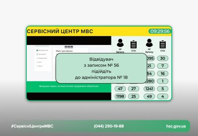 Головний сервісний центр МВС закликає відвідувачів звертати увагу не лише на голосові оголошення, а й на монітори в залах очікування. Це допоможе швидше орієнтуватися у власному виклику, не пропускати початок обслуговування та забезпечить комфортну й ефективну взаємодію з працівниками сервісного центру МВС.