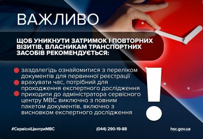 • перед візитом до сервісного центру МВС пройти експертне дослідження;