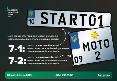 - 7-1 – знаки для автомобілів, які виготовляються за індивідуальними замовленнями їх власників.