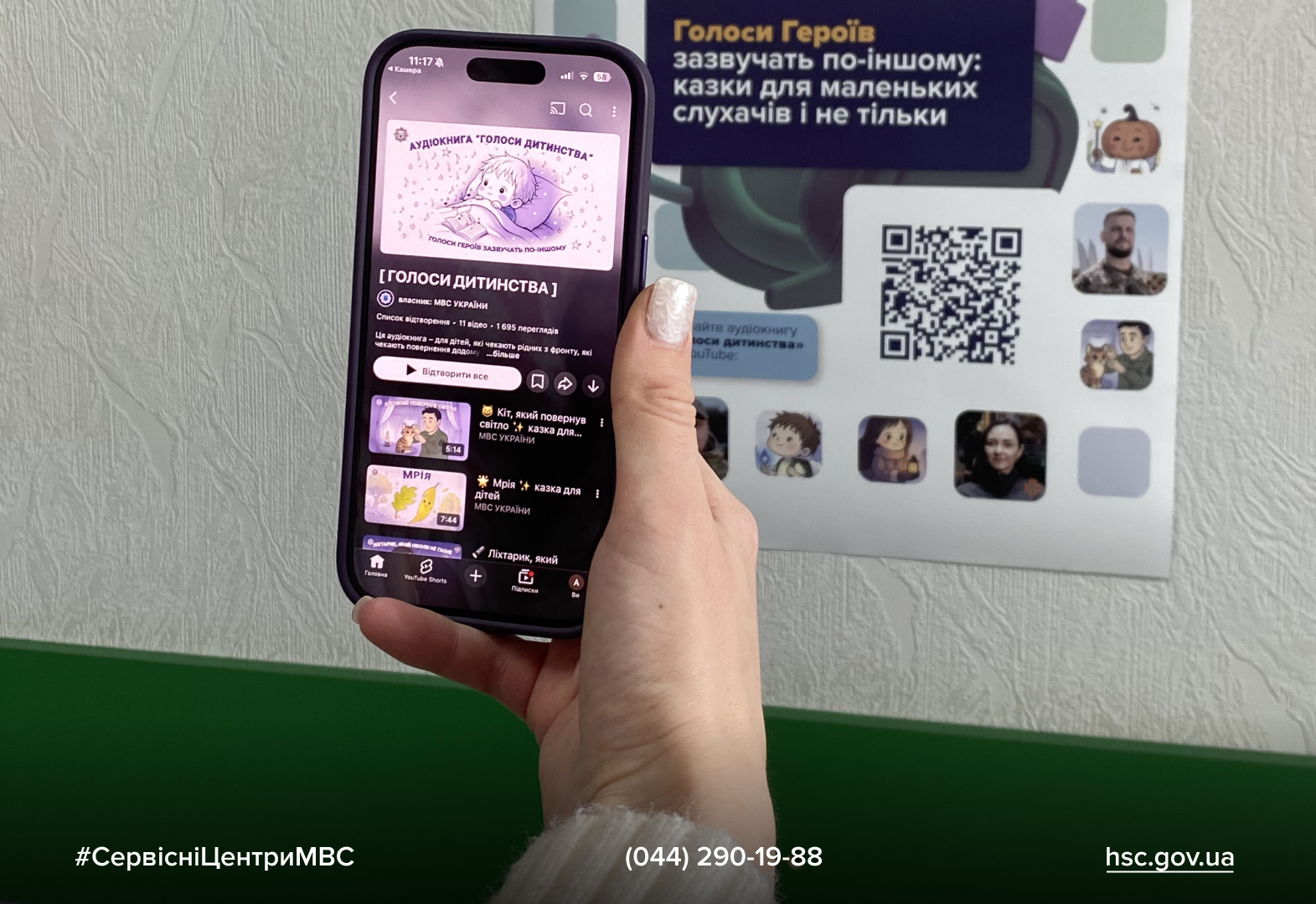 Запрошуємо батьків і дітей скористатися можливістю та послухати аудіокнигу «Голоси дитинства» у дитячих куточках сервісних центрів МВС або на YouTube.