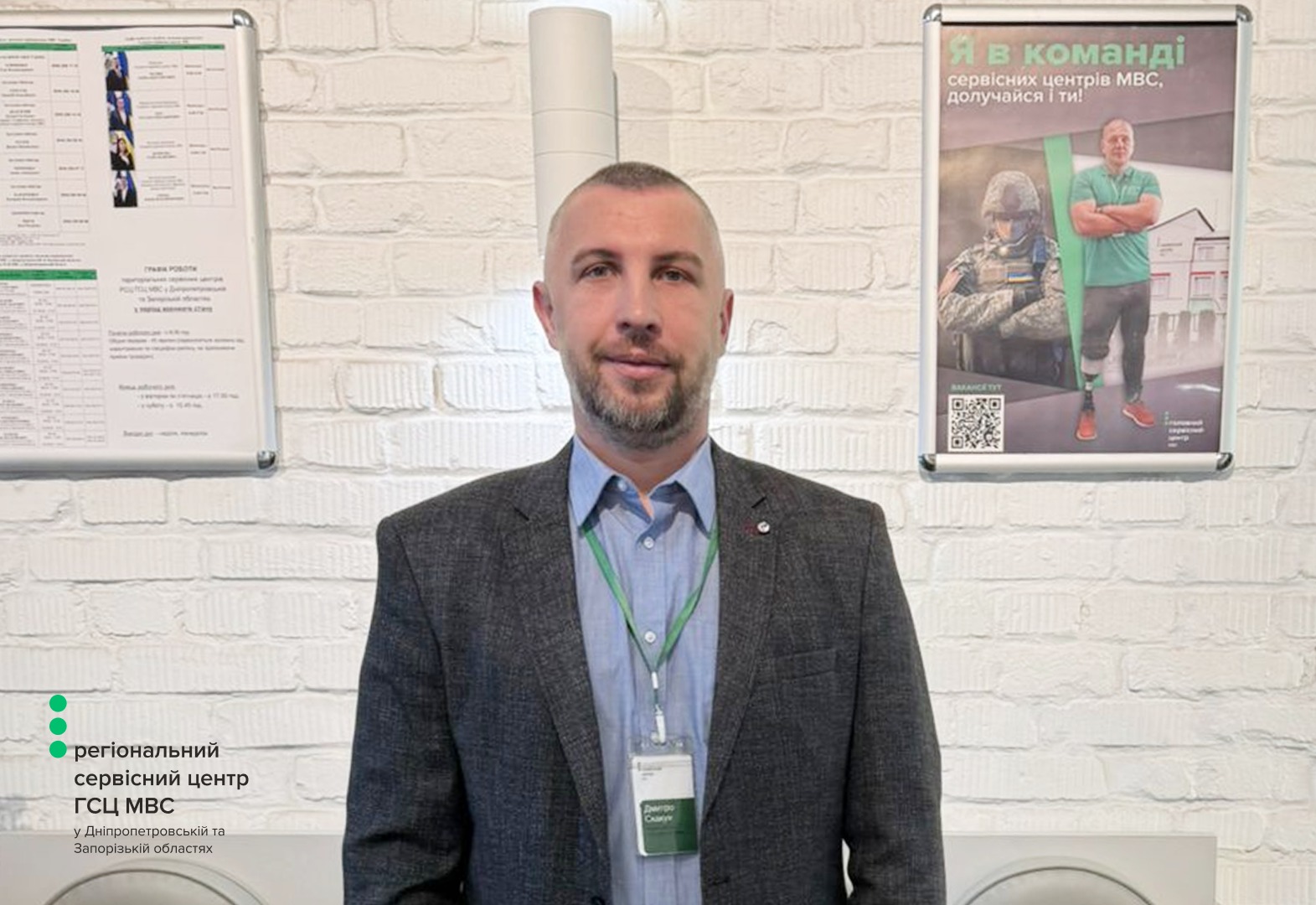 До команди сервісних центрів МВС на Дніпропетровщині доєднався ветеран війни – Дмитро. До початку повномасштабного вторгнення він жив у Херсоні й працював автомаляром. Коли Херсон був окупований, він з родиною змушений був переїхати до Кривого Рогу.