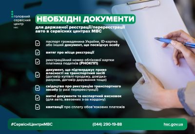 Для державної реєстрації або перереєстрації транспортного засобу необхідно мати: