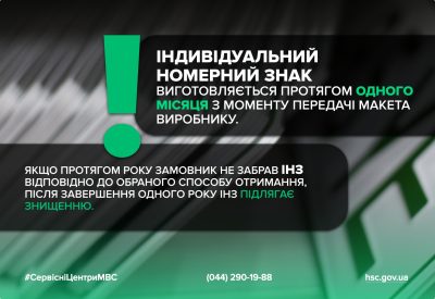 У разі якщо протягом зазначеного строку замовник не забрав індивідуальний номерний знак відповідно до обраного способу отримання, після завершення одного року ІНЗ підлягає знищенню в установленому порядку.