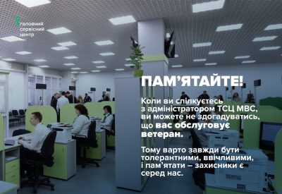Пам’ятайте : коли спілкуєтесь з адміністратором ТСЦ МВС, ви можете не здогадуватись, що вас обслуговує ветеран. Тому варто завжди бути толерантними, ввічливими, і пам’ятати – захисники серед нас.