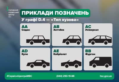 Ось кілька прикладів позначень, що можуть бути вказані у графі D.4 «Тип кузова»: