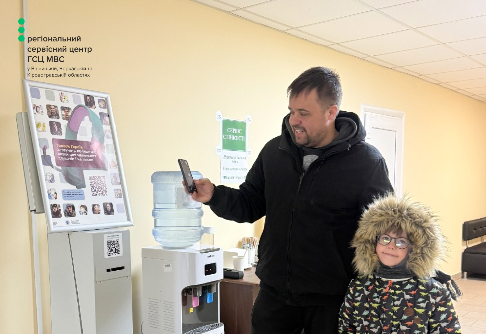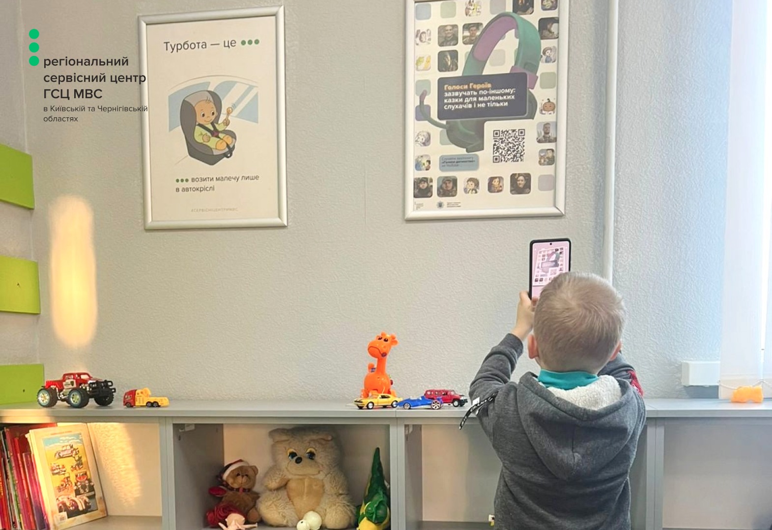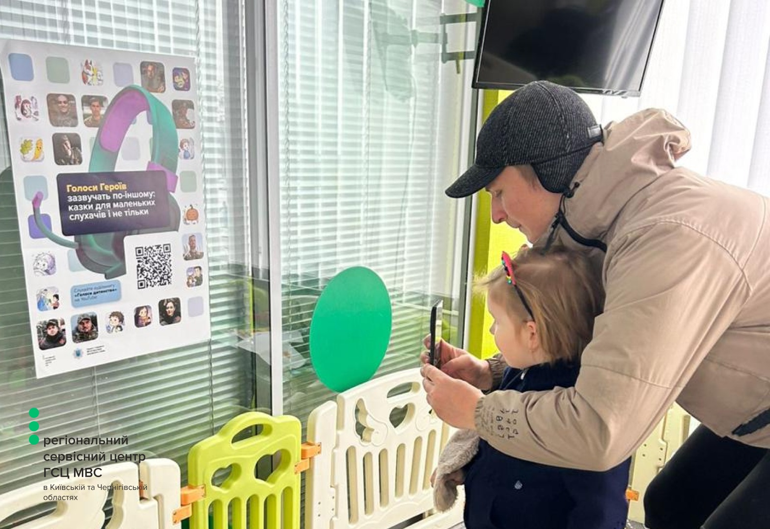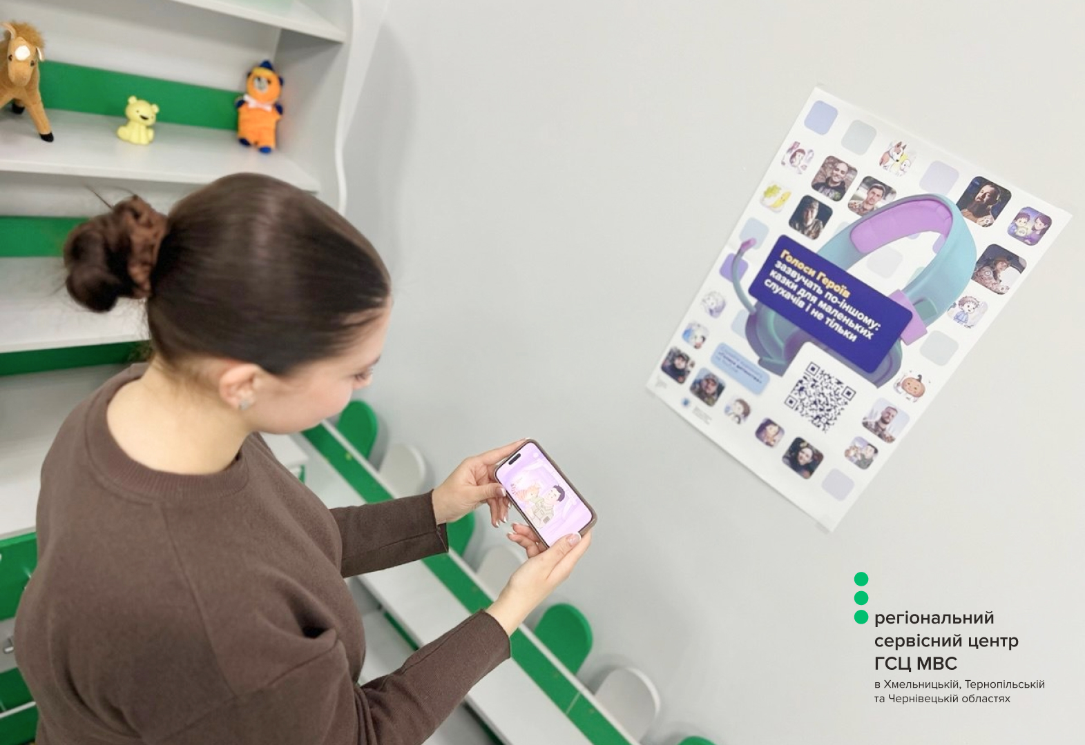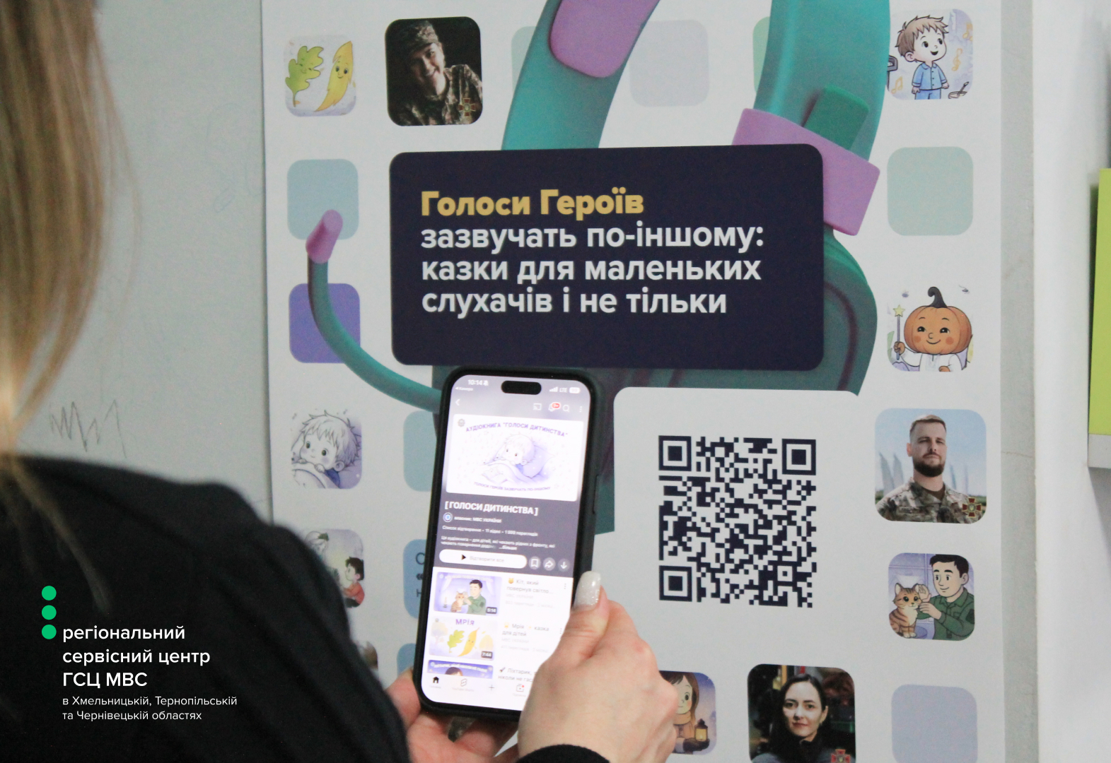 У дитячих куточках сервісних центрів МВС по всій Україні розміщені плакати «Голоси дитинства» з QR-кодами. Завдяки їм діти, які приходять разом із батьками, можуть легко отримати доступ до аудіоказок на власних гаджетах.