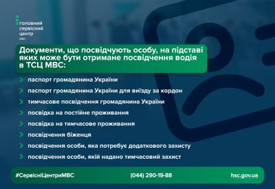 Для того, щоб отримати посвідчення водія людина подає до ТСЦ МВС документ, що посвідчує особу, а саме один із таких: