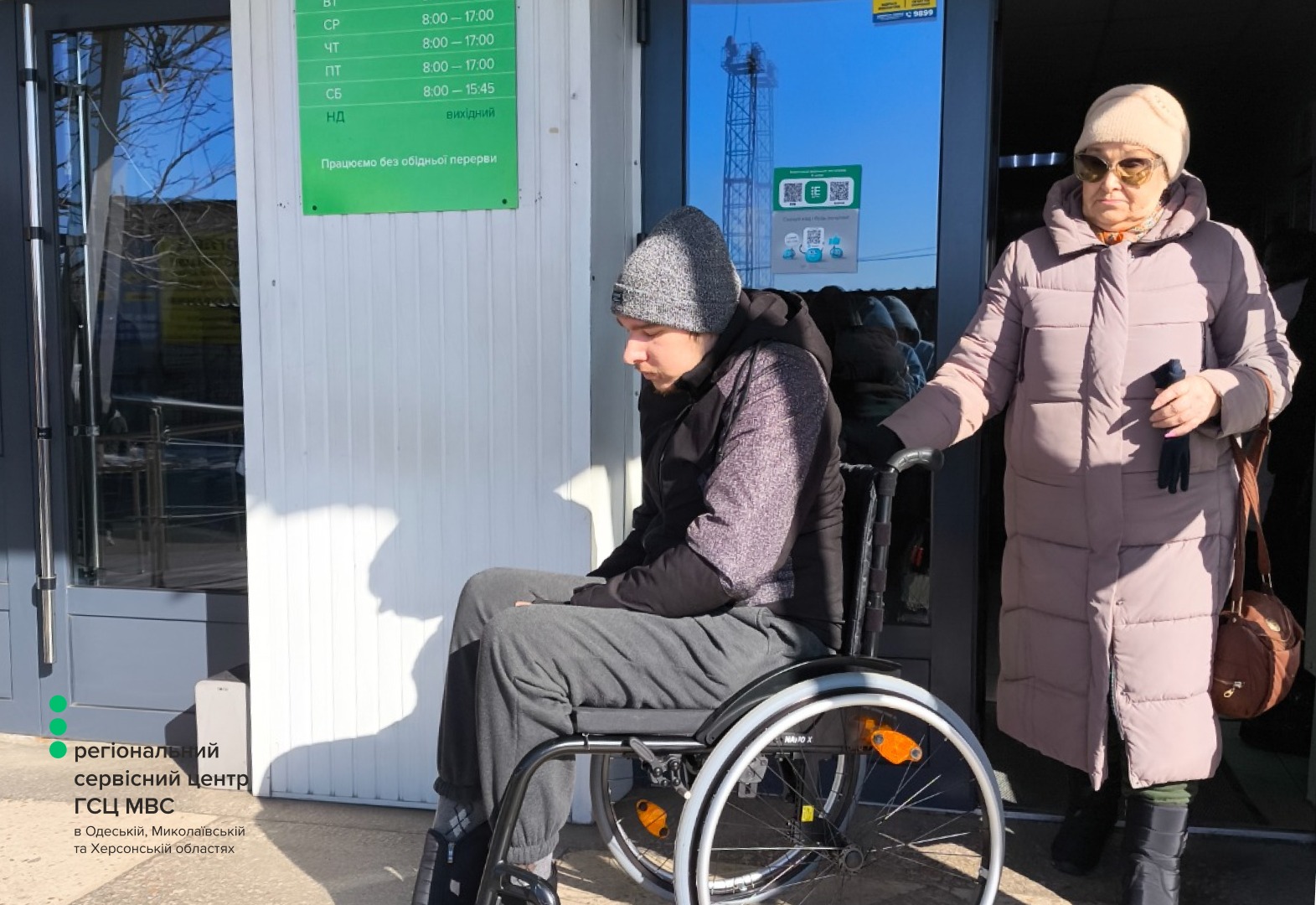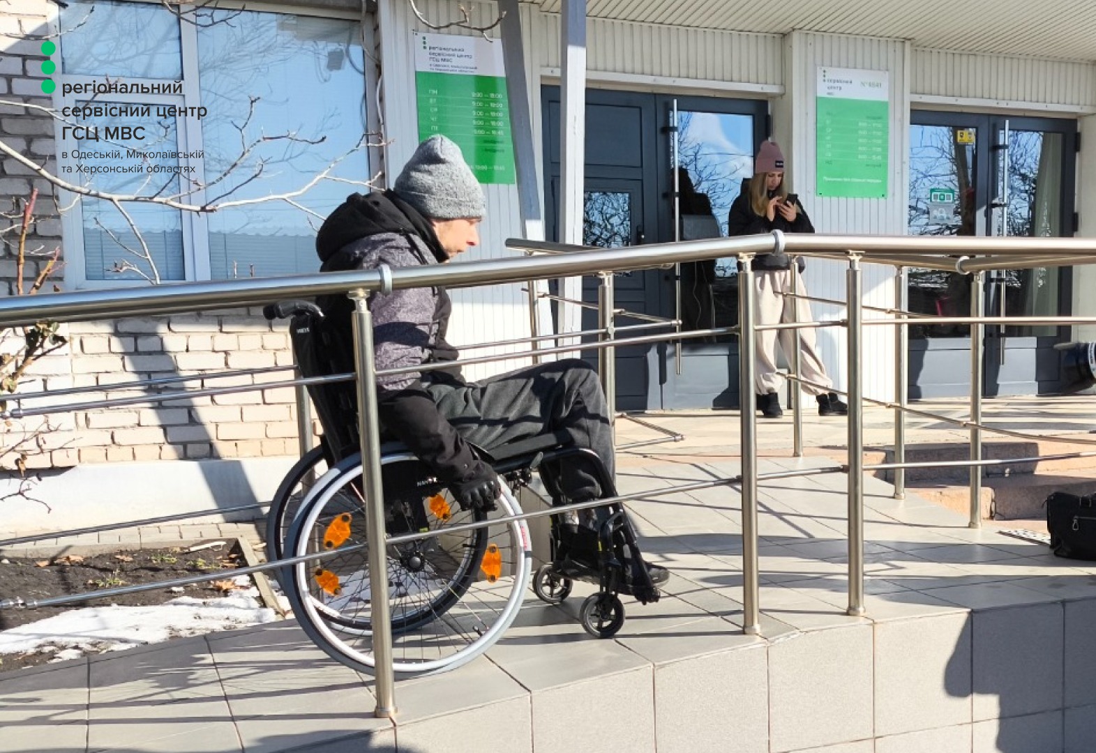 Простір адаптований для людей з інвалідністю, які пересуваються на кріслі колісному або тим, кому фізично складно підійматись на другий поверх, щоби отримати послугу.