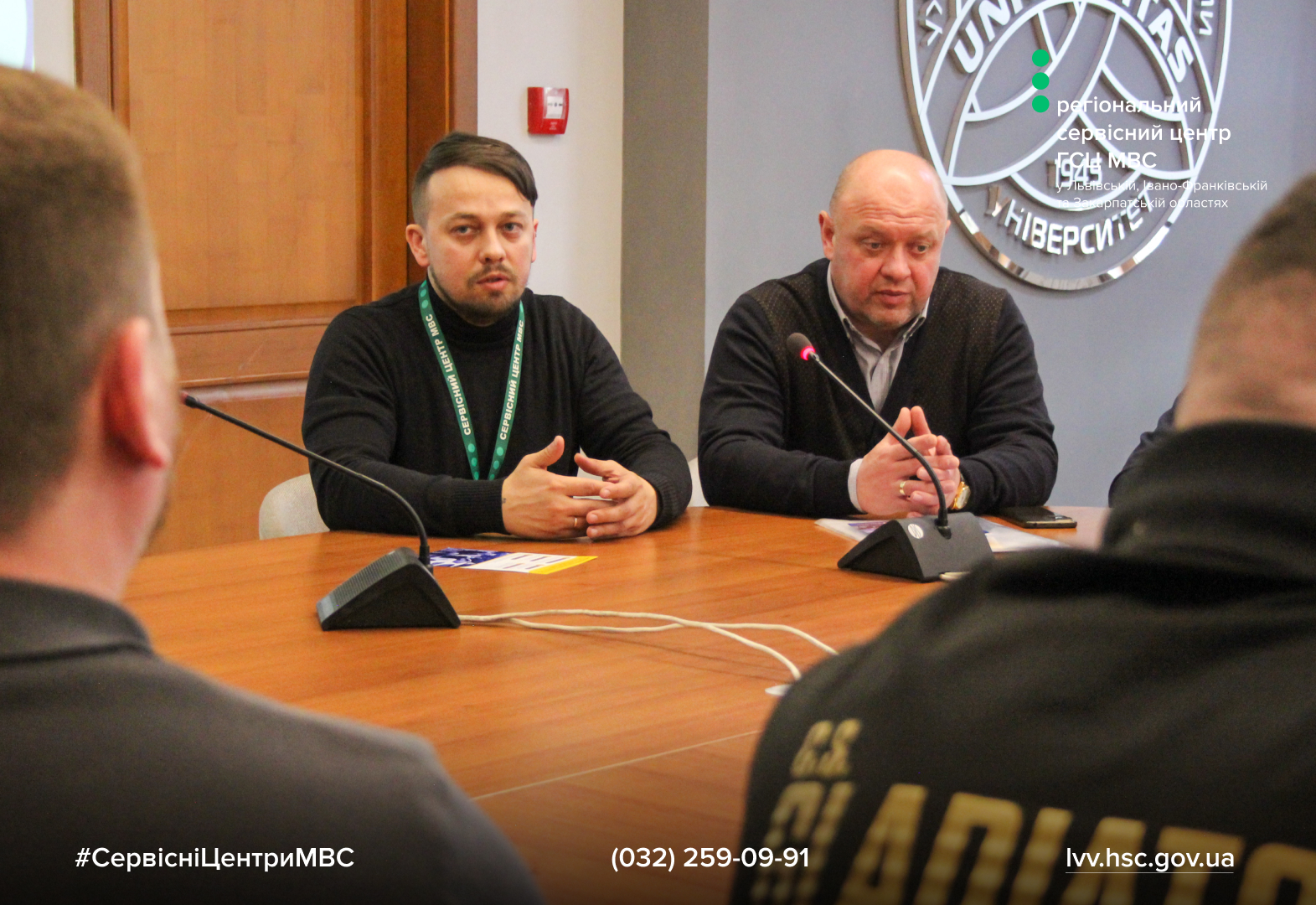 Під час зустрічі працівники сервісного центру МВС познайомилися з ветераном Іваном Коцюрубою, якому 26 років. Він проходив службу з 2020 року, брав участь у звільненні Києва та бойових діях на Донеччині. У 2023 році отримав складне поранення, внаслідок якого втратив частину правої кисті руки. Попри це, Іван не зламався та продовжив активне життя.