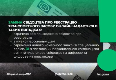 Зазначимо, що заміна свідоцтва про реєстрацію транспортного засобу онлайн надається в таких випадках: