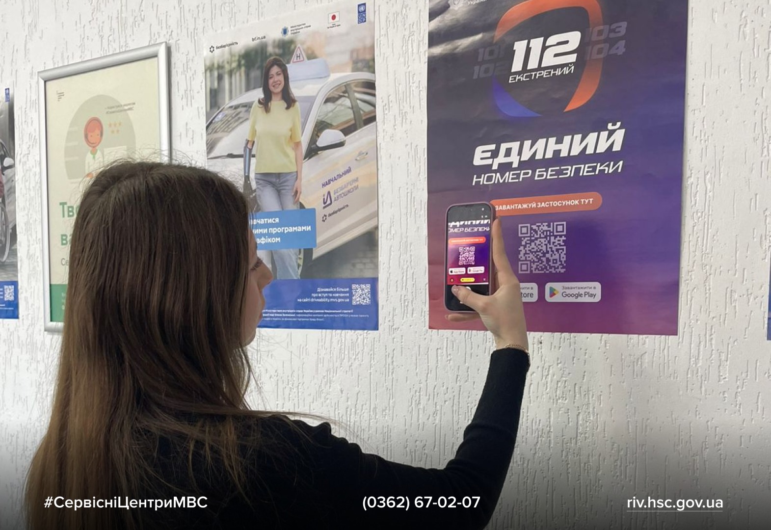 У всіх сервісних центрах МВС України розміщені інформаційні плакати та наліпки про застосунок 112: при вході до приміщень ТСЦ МВС, біля стійки рецепції, на місцях обслуговування громадян – поруч зі столами адміністраторів, а також в автомобілях для складання практичних іспитів.