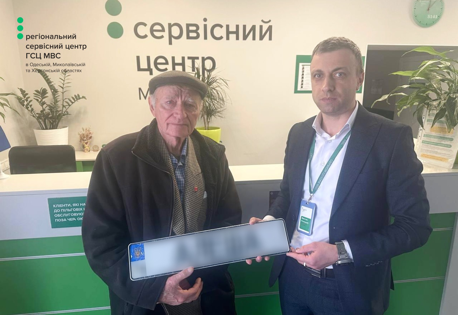 Під час замовлення послуги адміністратори уважно вислухали відвідувача та допомогли оформити всі документи, щоб обраний напис з’явився на номерному знаку – таким, як просив батько. Після виготовлення ІНЗ фахівці центру замінили свідоцтво про реєстрацію транспортного засобу, внісши до нього відповідні відомості.