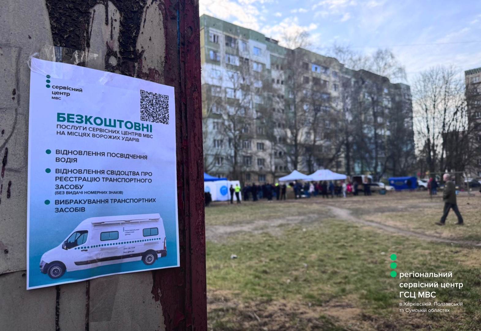 Мобільні сервісні центри МВС працювали у громадах Херсонщини, Харківщини, Сумщини та на місці обстрілу в Полтаві