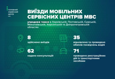 Упродовж тижня мобільні сервісні центри МВС здійснили виїзди до віддалених громад Харківської, Полтавської та Сумської областей, де надали громадянам понад 80 адміністративних послуг.