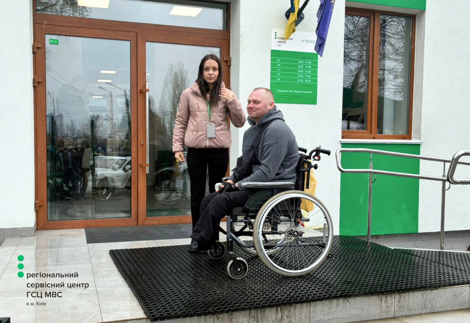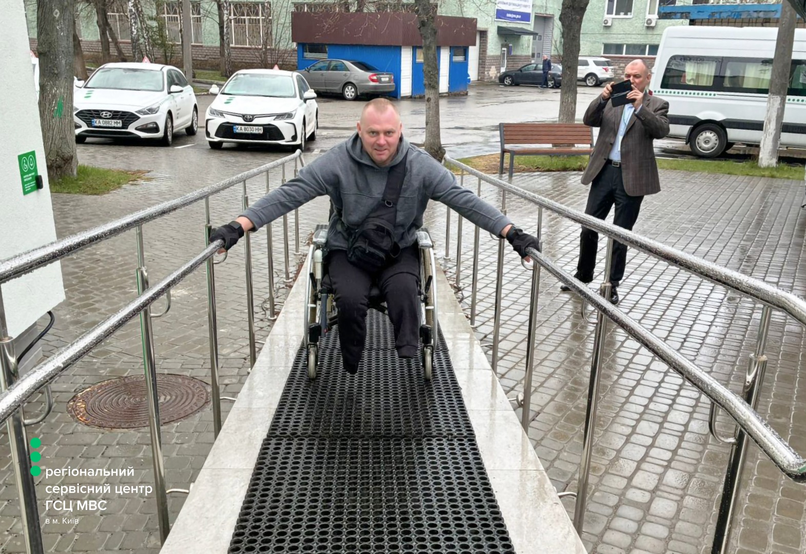 «Я особисто перевірив, що створено для безбар’єрності у сервісному центрі МВС — скористався пандусом, протестував кнопку виклику адміністратора, пересувався вільно на кріслі колісному. Без проблем поставив підпис на всіх необхідних паперах. Простір відкритий, інформація доступна, а навігація зрозуміла. Це важливо для мобільності і самостійності», — поділився Олександр.