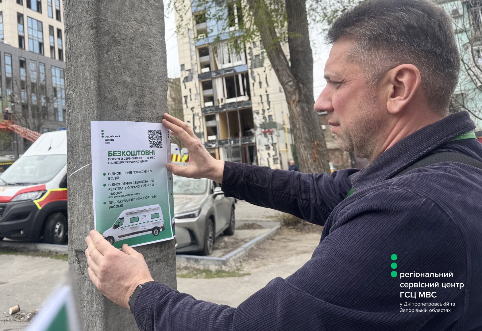 Після масованої ракетно-дронової атаки по Дніпру МСЦ МВС долучився до роботи координаційного штабу. Фахівці мобільної бригади працювали безпосередньо на місцях руйнувань – поруч із постраждалими людьми. Вони консультували щодо відновлення документів, пояснювали алгоритми дій та допомагали зорієнтуватися у перших кроках після втрат.