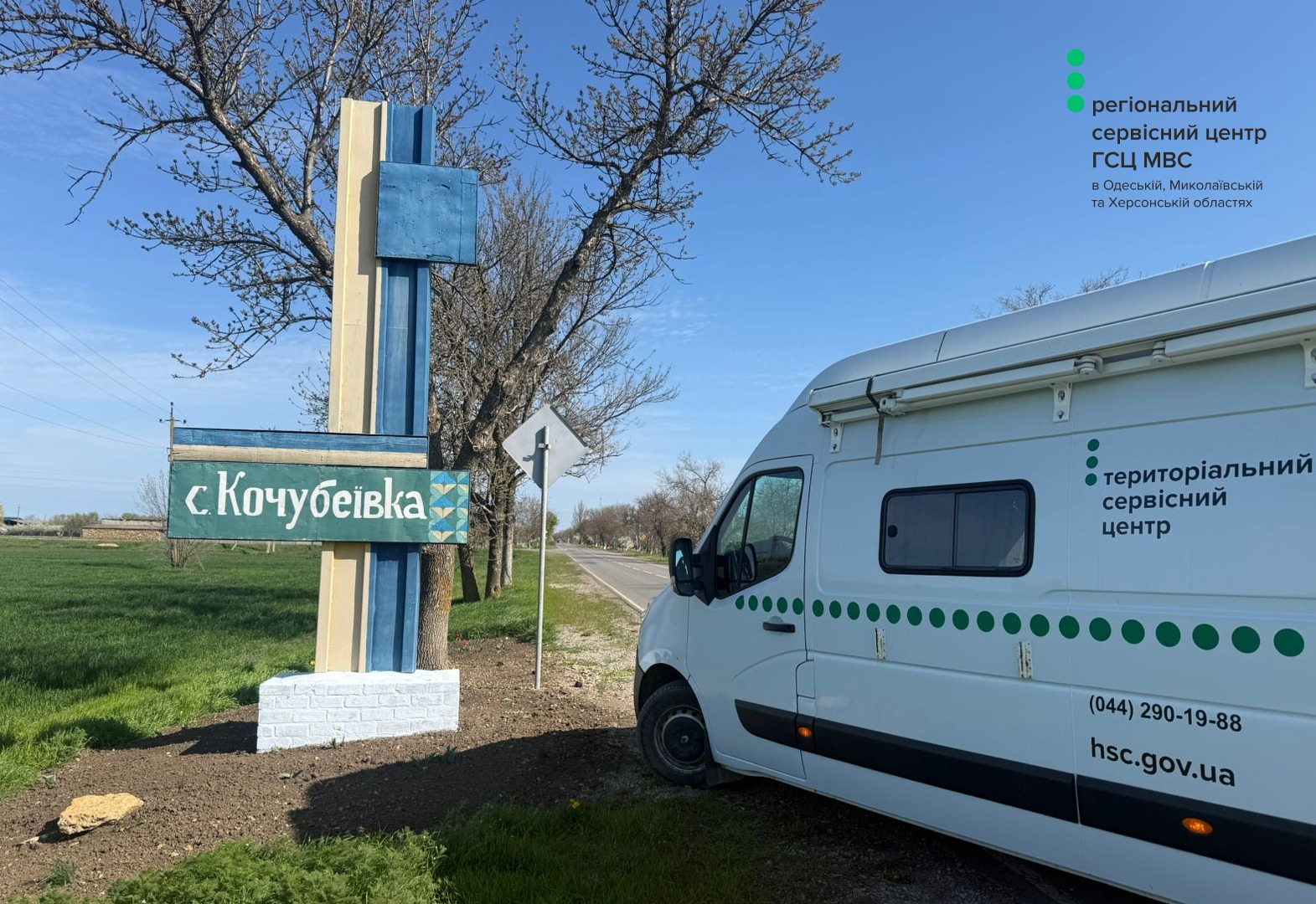 Мобільний сервісний центр МВС виїхав до села Кочубеївка, де через безпекову ситуацію та обмежене транспортне сполучення людям складно дістатися до стаціонарних сервісних підрозділів.