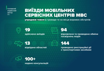 Мобільні сервісні центри МВС також працювали у різних регіонах України, забезпечуючи доступність послуг.