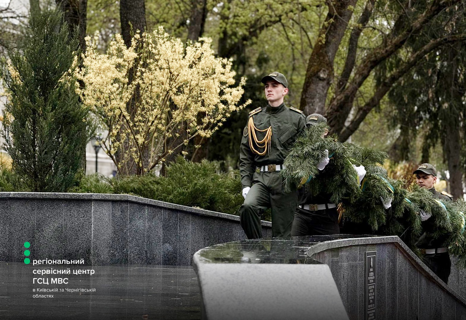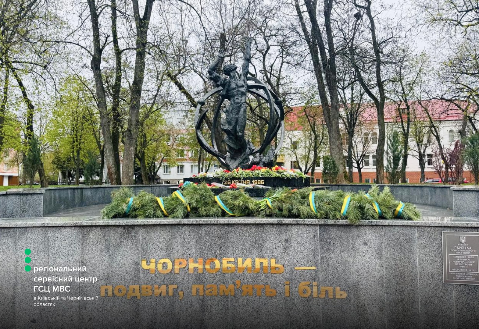 У Чернігові відбулися пам’ятні заходи з нагоди роковин трагедії. Керівництво регіонального сервісного центру МВС в Київській та Чернігівській областях долучилося до покладання квітів до пам’ятного знаку ліквідаторам.