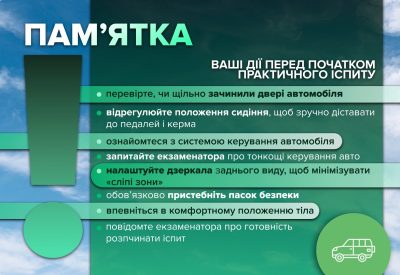 Пам’ятка: ваші дії перед початком практичного іспиту: