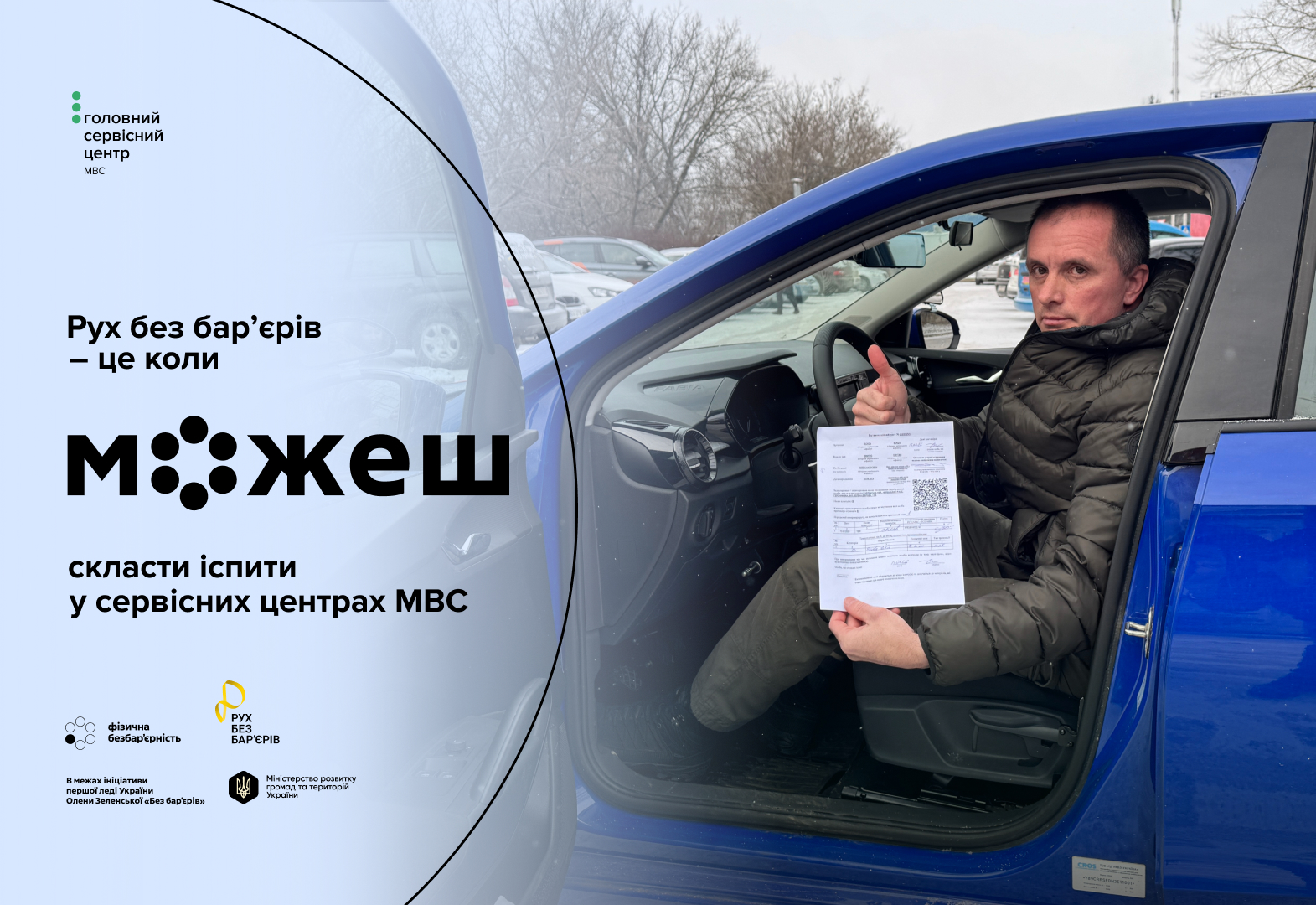Безбар’єрність – це про рівний доступ до державних послуг, мобільність та можливість рухатись в будь-який час і куди захочеш. Саме такі умови створюють сервісні центри МВС для всіх людей, які бажають здійснити свою мрію – керувати автомобілем.