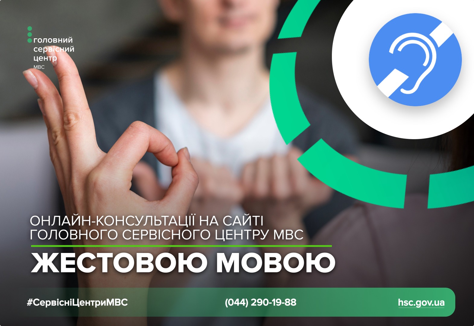 В Україні проживають тисячі людей, для яких жестова мова є основним засобом спілкування. Головний сервісний центр МВС підтримує реалізацію Національної стратегії зі створення безбар’єрного простору, ініційованої першою леді України Оленою Зеленською, і працює над тим, щоб державні послуги та сервіси були однаково доступними для всіх. На офіційному вебсайті Головного сервісного центру МВС встановлено спеціалізований вебвіджет «Вушко», який забезпечує вільний та комфортний доступ громадян із порушеннями слуху до інформації, консультацій чи іншої допомоги онлайн – швидко, зручно та без потреби виходити з дому. Що таке віджет «Вушко» і як він працює Вебвіджет «Вушко» – це сервіс, який миттєво підключає перекладача жестової мови до онлайн-спілкування з людиною, яка має порушення слуху. За кілька кліків користувач може: отримати переклад новин, інструкцій чи документів, необхідних для користування послугами сервісних центрів МВС; здійснити відеодзвінок і поспілкуватися з перекладачем жестової мови; отримати консультацію телефоном через оператора контакт-центру Головного сервісного центру МВС. Як скористатися віджетом «Вушко»: Зайдіть на сайт Головного сервісного центру МВС Справа знизу знайдіть вебвіджет «Вушко» і натисніть на нього. Введіть свої прізвище, ім’я та по батькові. Заповніть номер телефону та натисніть «Продовжити». Введіть код із відео, який показує перекладач жестової мови. Зачекайте кілька секунд – і вам відповість перекладач жестової мови у форматі відеозв’язку. Звертаємо увагу: також можна попросити перекладача зробити телефонний дзвінок або залишити звернення до Головного сервісного центру МВС від вашого імені. Подальший розвиток ініціативи Це ще один крок до створення зручного та безбар’єрного середовища, у якому кожен громадянин може отримати необхідну державну послугу – незалежно від своїх можливостей. Сервісні центри МВС продовжують працювати над створенням безбар’єрного простору для всіх громадян України. Консультацію щодо послуг сервісних центрів МВС можна отримати за телефоном (044) 290-19-88 або на сторінках Головного сервісного центру МВС в Фейсбук та Інстаграм. Відповіді на найпоширеніші питання та корисну інформацію черпайте на сайті.