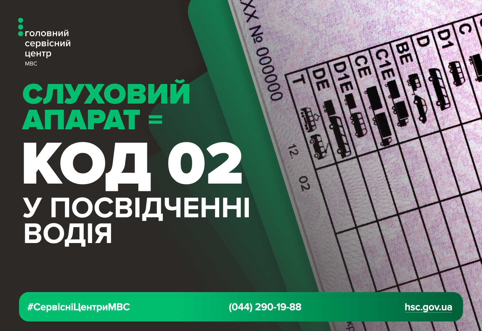 Під час проходження медичного огляду майбутні або чинні водії можуть отримати висновок про необхідність використання певних допоміжних засобів під час керування транспортним засобом. Це може стосуватися не лише окулярів чи лінз, а й слухових апаратів або інших пристроїв для компенсації втрати слуху. Додатком 1 до Положення про порядок видачі посвідчень водія та допуску громадян до керування транспортними засобами, затвердженого постановою Кабінету Міністрів України від 08 травня 1993 року № 340, визначено офіційні коди обмежень. Зокрема, код «02» означає використання засобу корекції втрати слуху (наприклад, слухового апарата). Що означає код «02»? Код «02» свідчить, що особа допущена до керування транспортним засобом лише за умови використання слухового апарата або іншого пристрою для компенсації втрати слуху. Це не рекомендація, а обов’язкова умова допуску до керування. Недотримання цієї вимоги означає, що водій фактично керує транспортним засобом із порушенням встановленого обмеження. Як це виглядає в посвідченні водія? У посвідченні водія, яке видають сервісні центри МВС, інформація про такі обмеження зазначається у графі «12. Обмеження» або у полі «Особливі відмітки» (залежно від формату документа). Код «02» означає: «Керування лише із слуховим апаратом». Як вноситься відмітка? Позначка «02» вноситься на підставі медичної довідки встановленого зразка, у якій зафіксовано, що особа має втрату слуху та потребує слухового апарата для безпечного керування транспортним засобом. Вона може бути зазначена: під час первинного отримання посвідчення водія; при відкритті нової категорії під час складання іспитів, після позбавлення права на керування ТЗ; під час підготовки або перепідготовки в автошколі. Важливо: під час дії воєнного стану медична довідка не є обов’язковою при обміні національного посвідчення водія (без складання іспитів). Чому це важливо? Позначка «02» – це не просто запис у посвідченні. Це технічна умова допуску до керування, яка безпосередньо впливає на безпеку дорожнього руху. Водій повинен використовувати слуховий апарат під час керування транспортом. Наявність слуху дозволяє своєчасно реагувати на звукові сигнали, попередження чи сирени спецтранспорту. Тому дотримання цієї вимоги – важлива складова безпечної поведінки на дорозі. Що робити, якщо стан слуху покращився? Якщо водій із позначкою «02» пройшов лікування або реабілітацію, і медичні показання змінилися, – він може пройти повторний медичний огляд. Якщо лікарі підтвердять, що потреба у слуховому апараті відсутня, видається нова медична довідка без цього обмеження. На її підставі водій може звернутися до сервісного центру МВС для обміну посвідчення водія без коду «02». Проте до моменту заміни документа зазначене обмеження залишається чинним і має виконуватися. Перевірте, чи ваш медичний висновок містить оцінку потреби у використанні слухового апарата. Пам’ятайте: зміни стану здоров’я повинні бути відображені у відповідних документах. Якщо умова більше не актуальна — зверніться за оновленням медичної довідки та посвідчення водія. Консультацію щодо послуг сервісних центрів МВС можна отримати за телефоном (044) 290-19-88 або на сторінках Головного сервісного центру МВС в Фейсбук та Інстаграм. Відповіді на найпоширеніші питання та корисну інформацію 