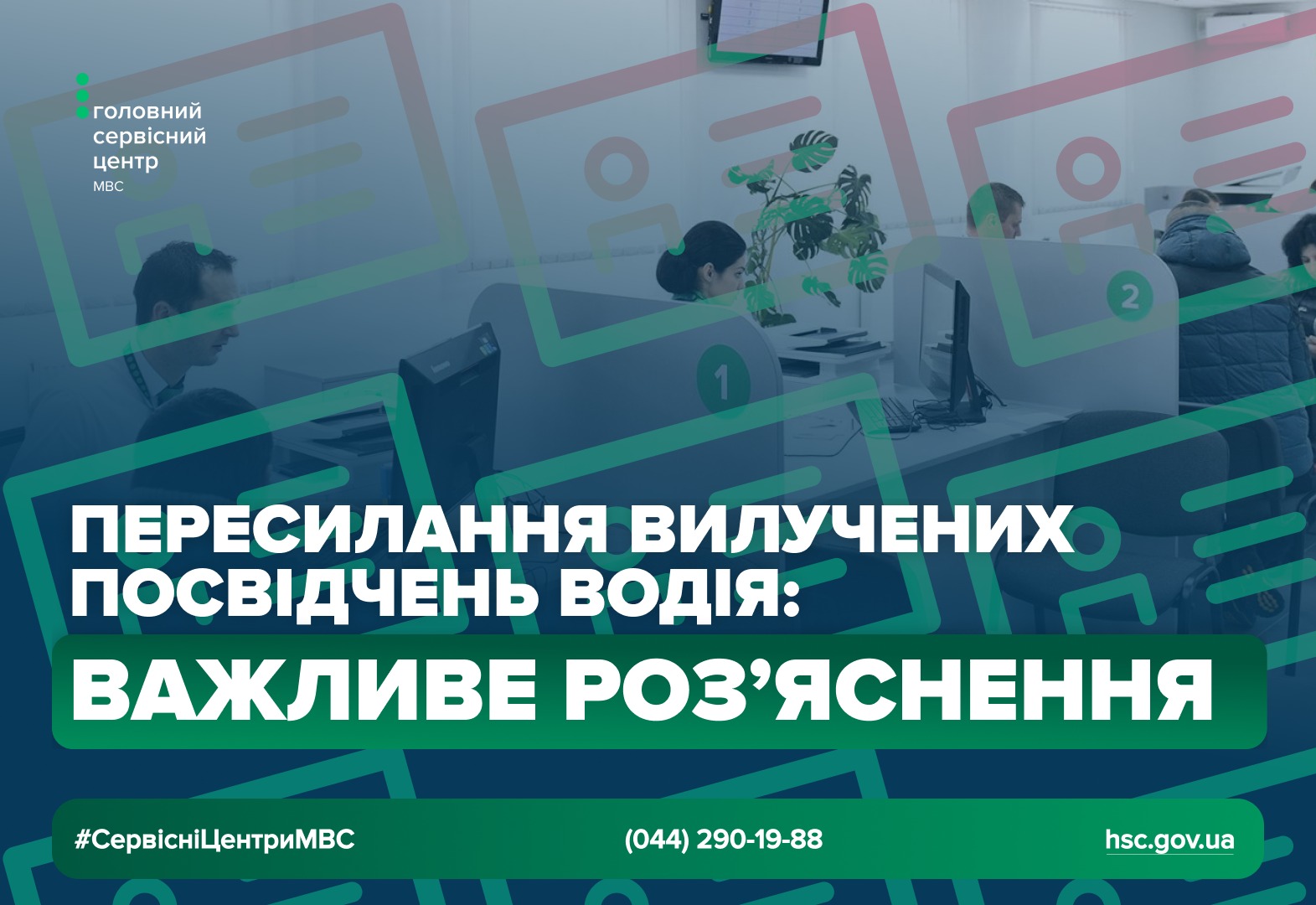 Консультацію щодо послуг сервісних центрів МВС можна отримати за телефоном (044) 290-19-88 або на сторінках Головного сервісного центру МВС в Фейсбук та Інстаграм. Відповіді на найпоширеніші питання та корисну інформацію черпайте на сайті.
