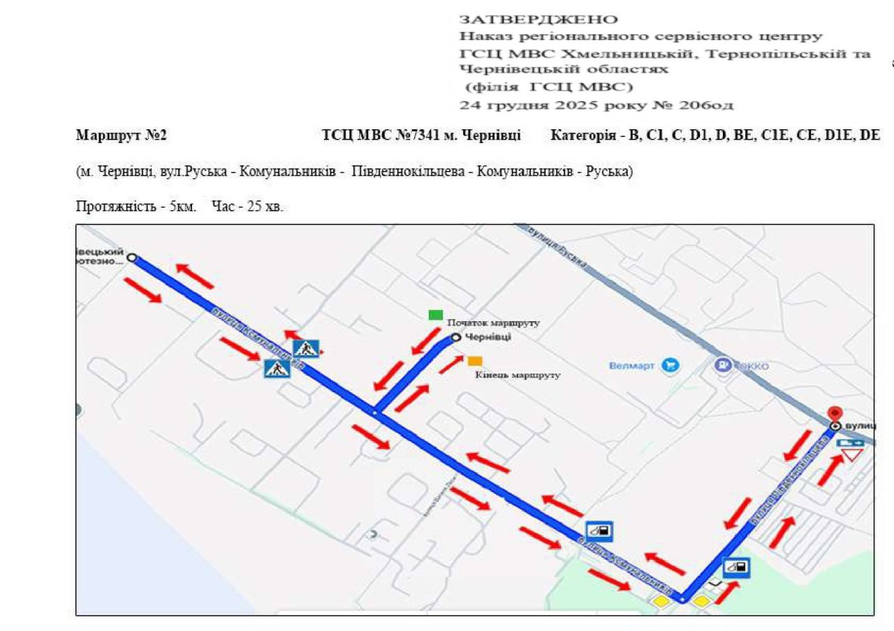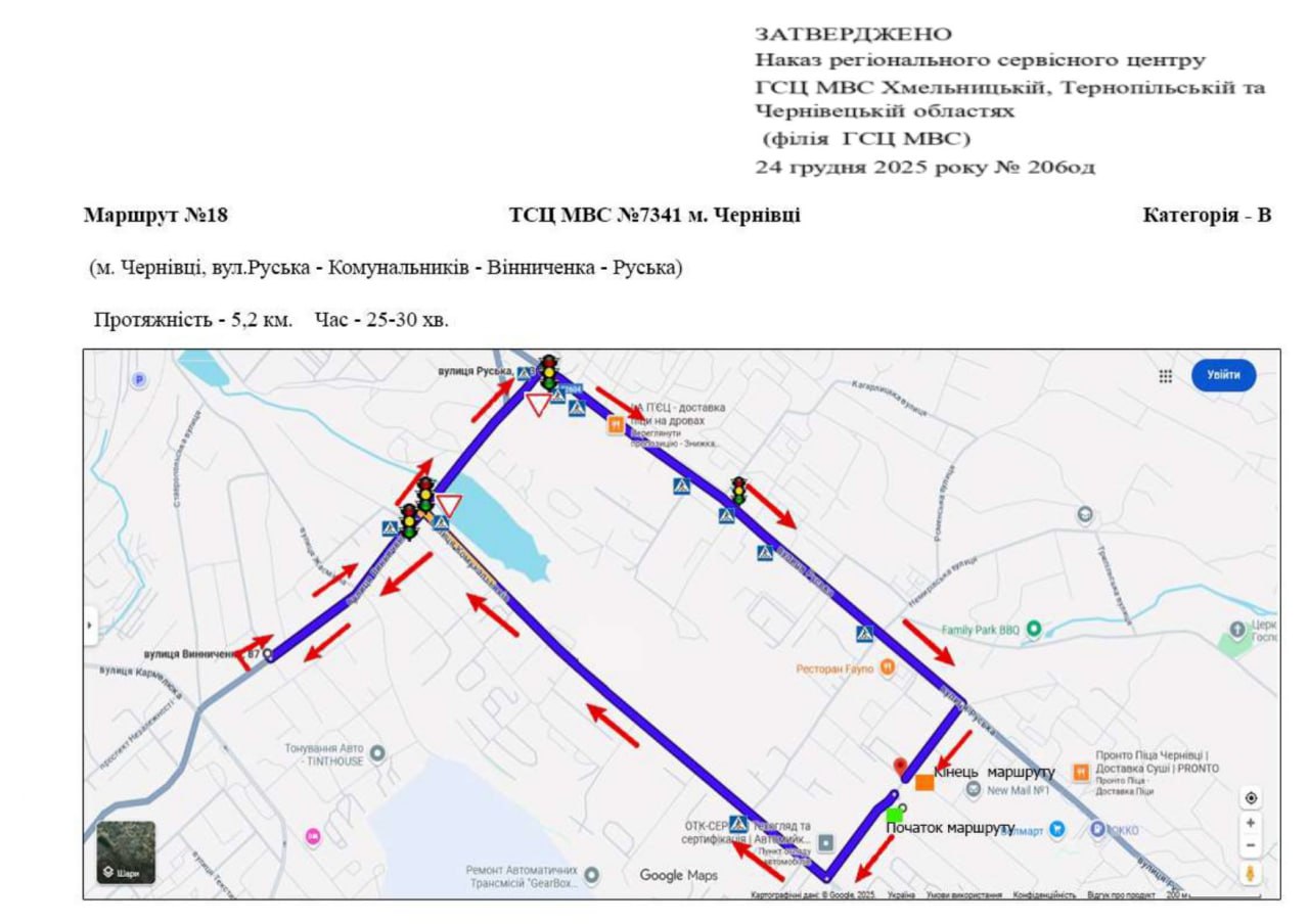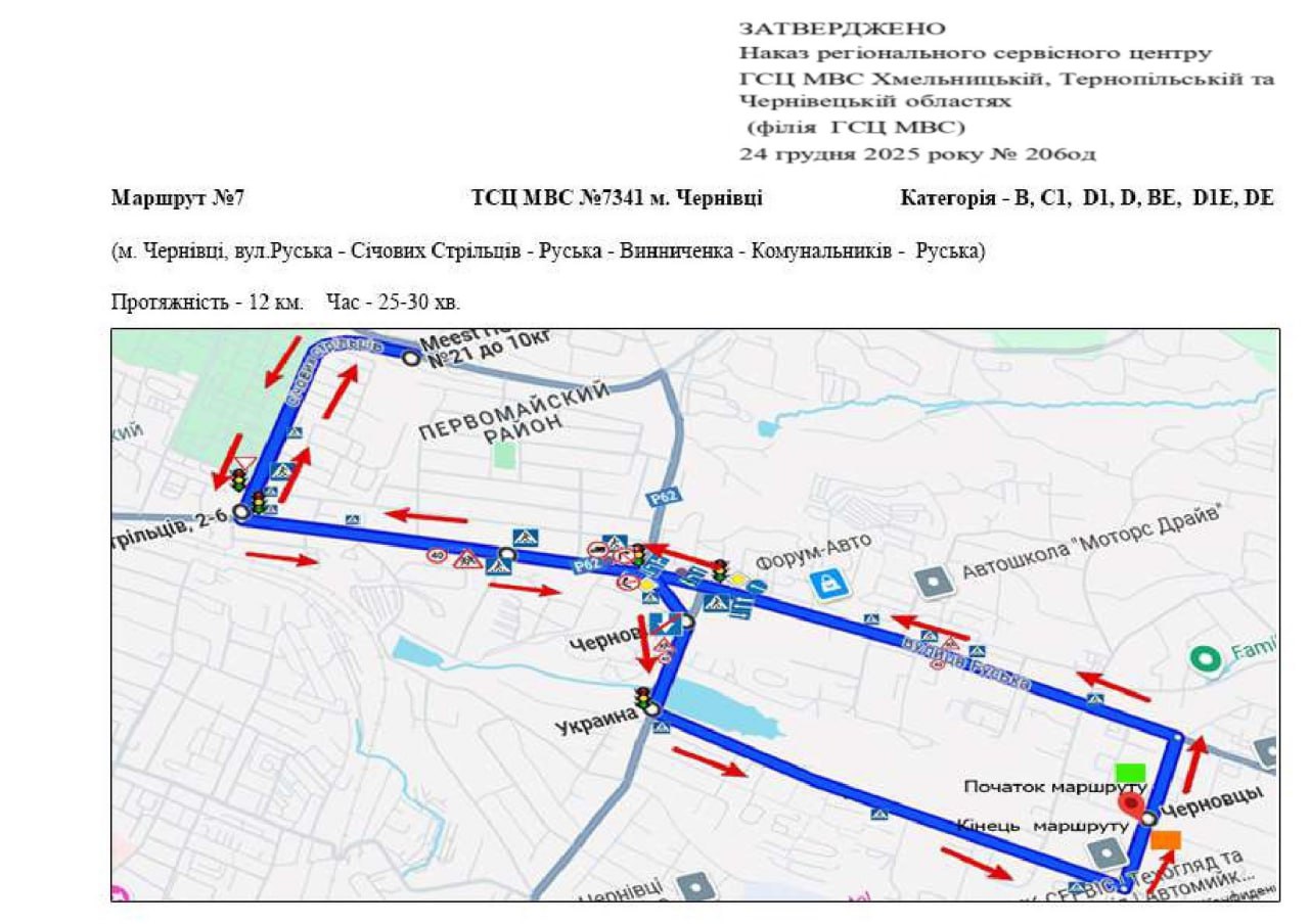 Маршрути для перевірки навичок керування транспортними засобами