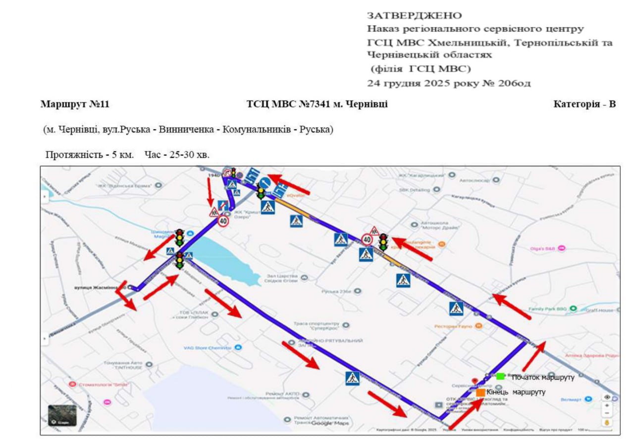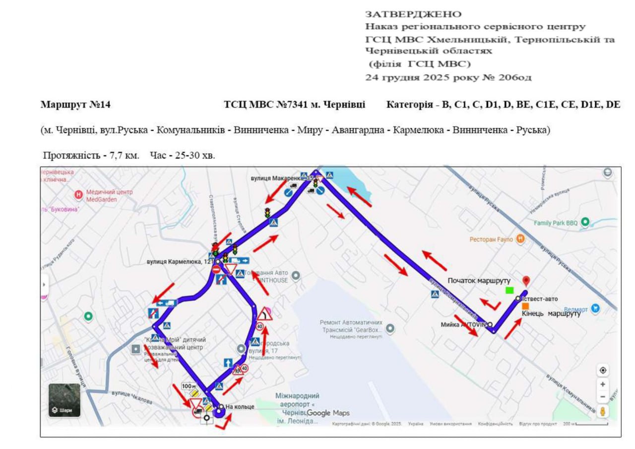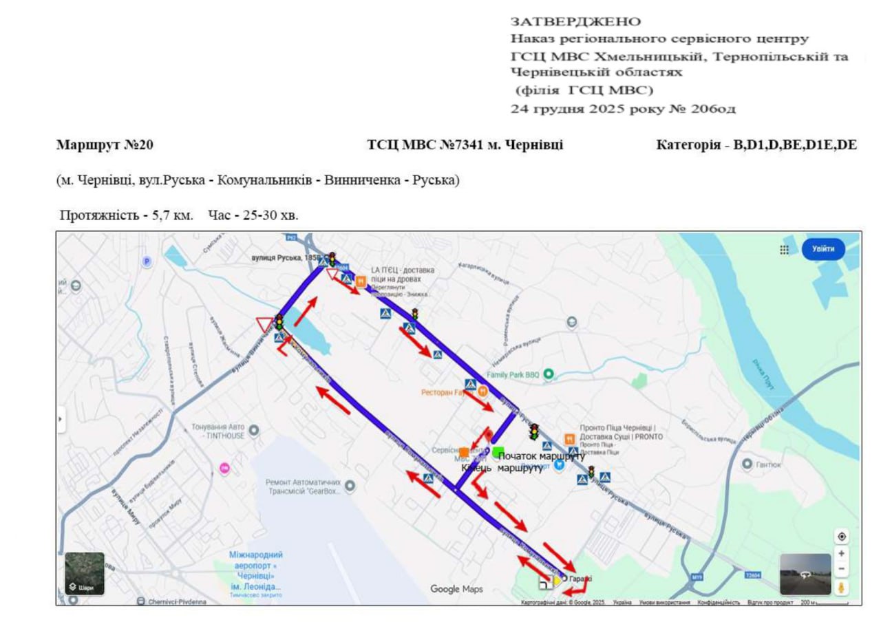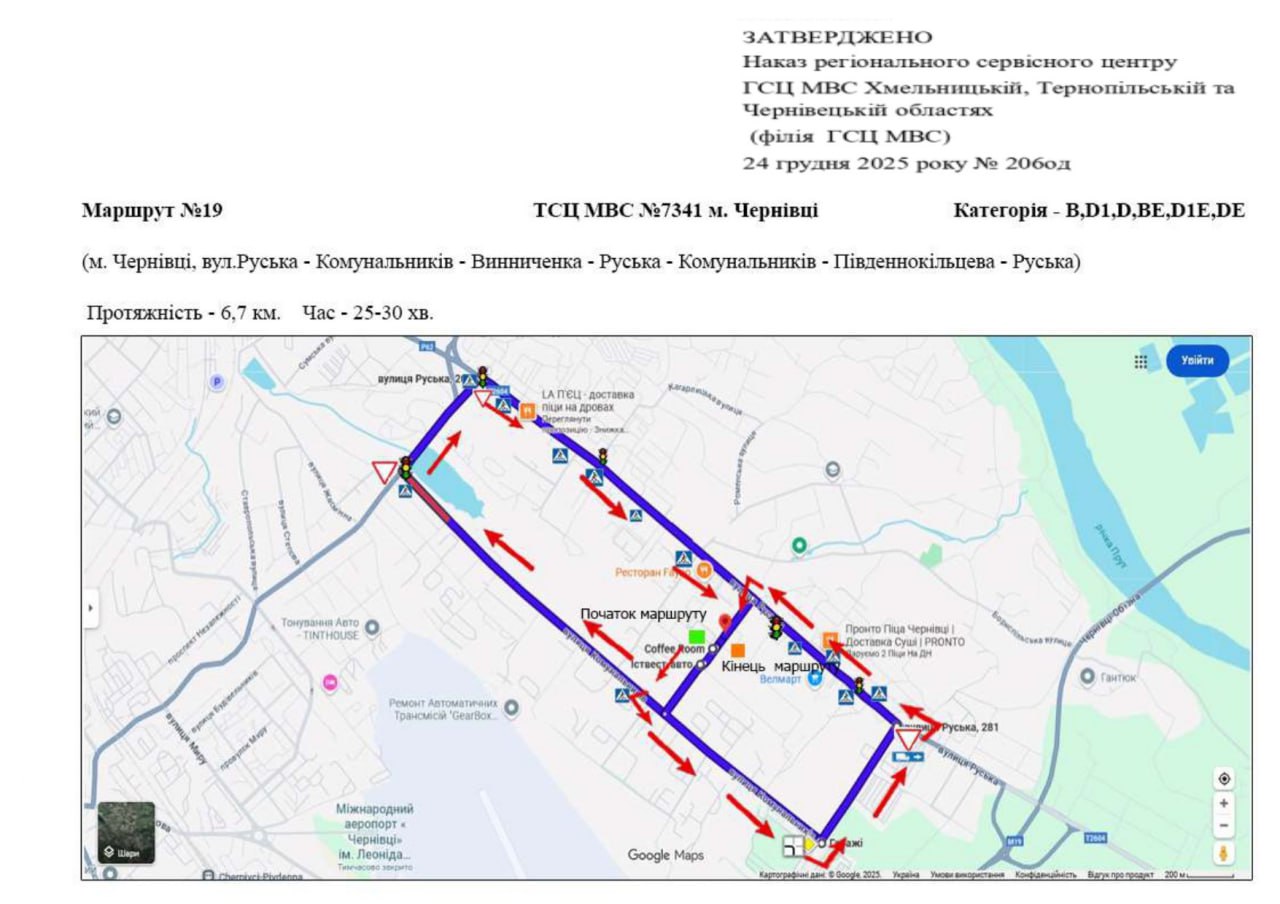 Маршрути для перевірки навичок керування транспортними засобами