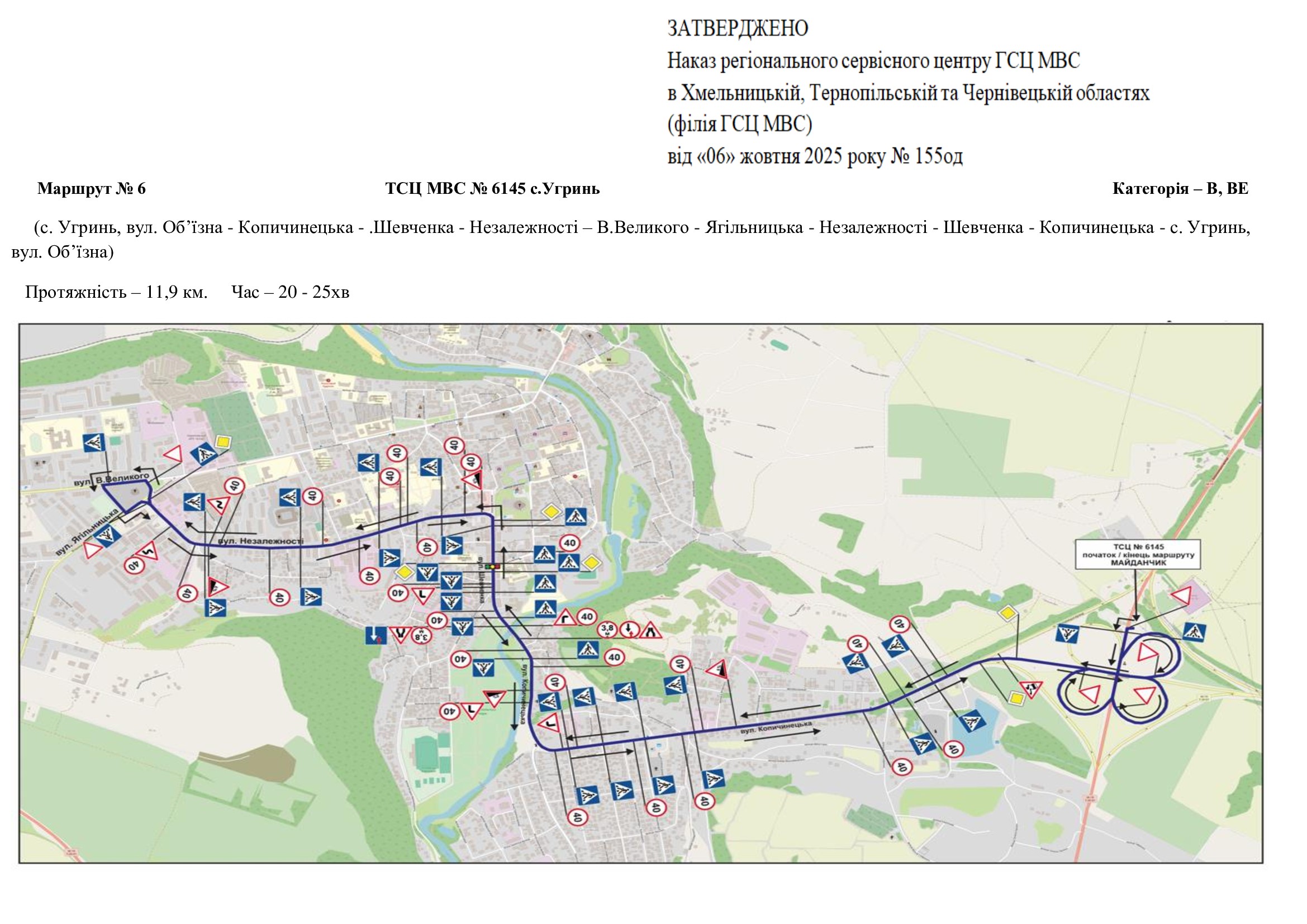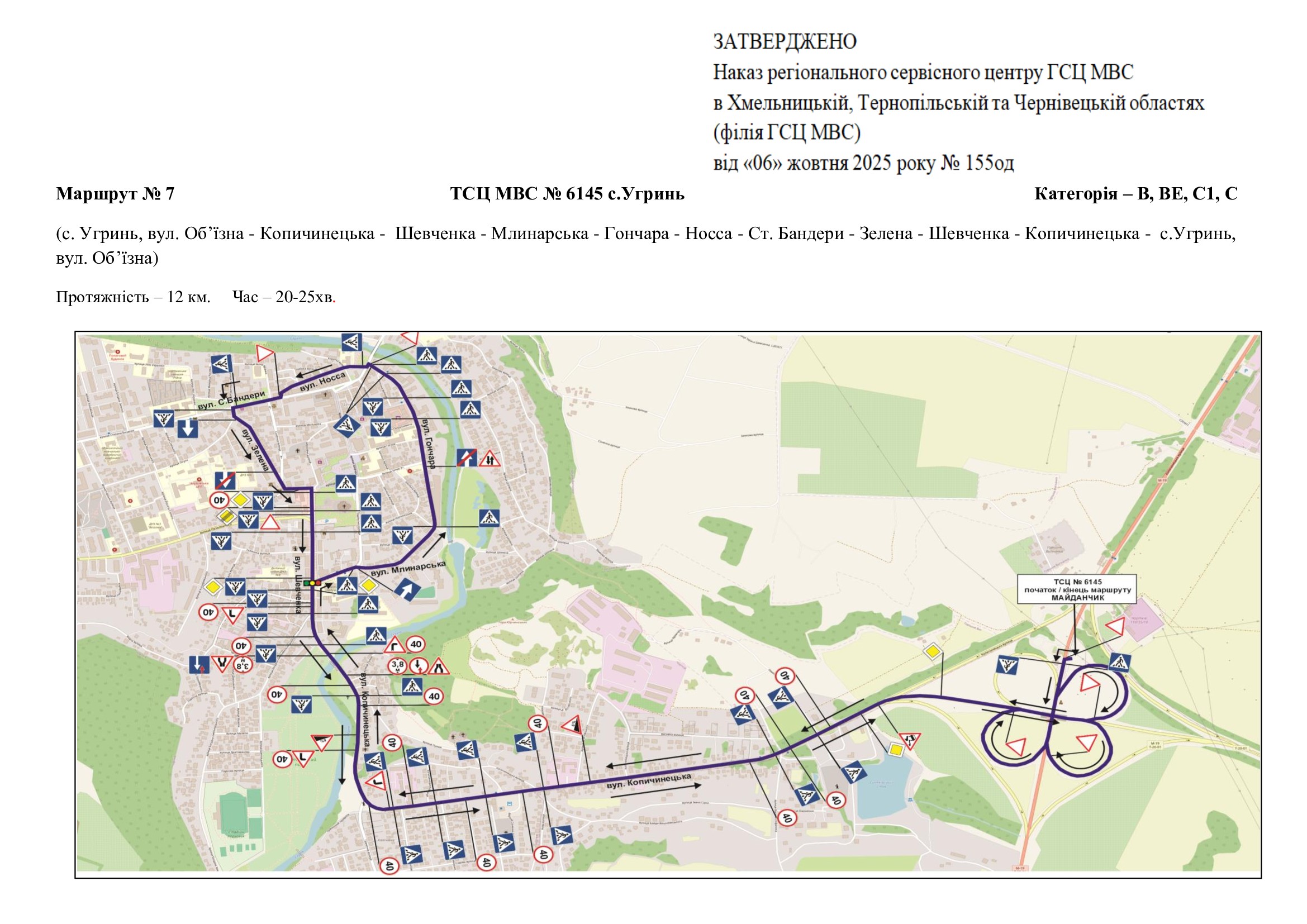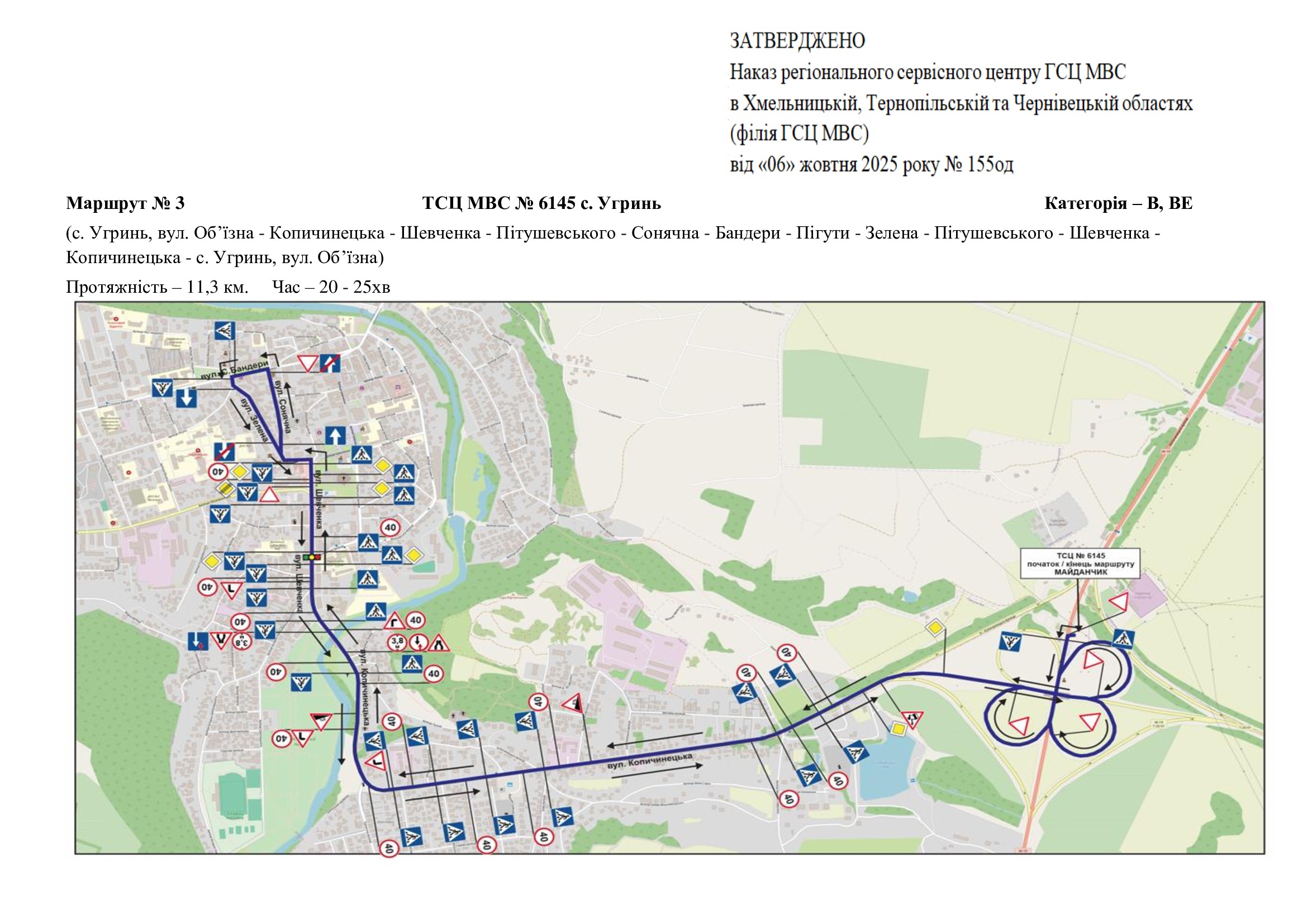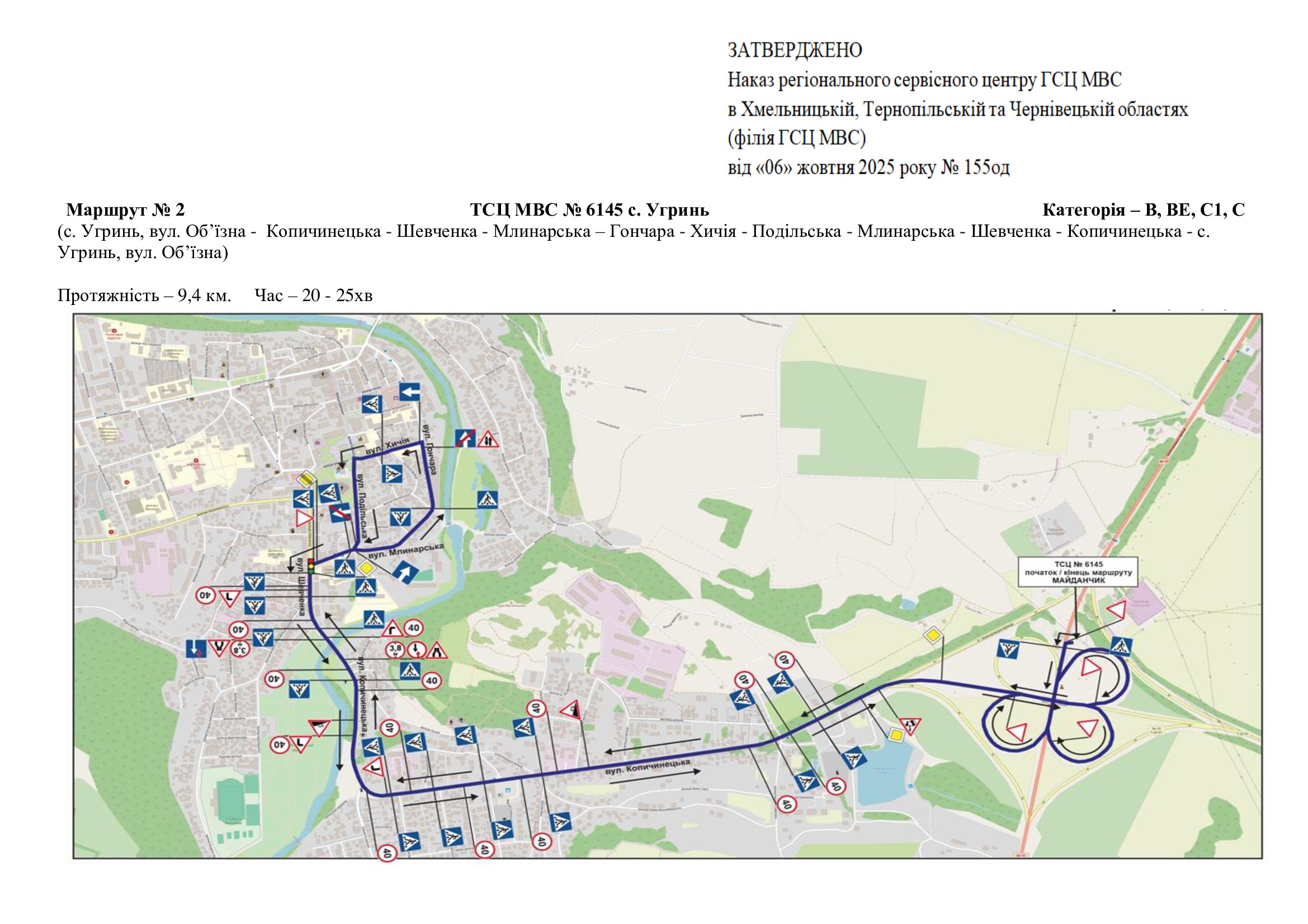 Маршрути для перевірки навичок керування транспортними засобами