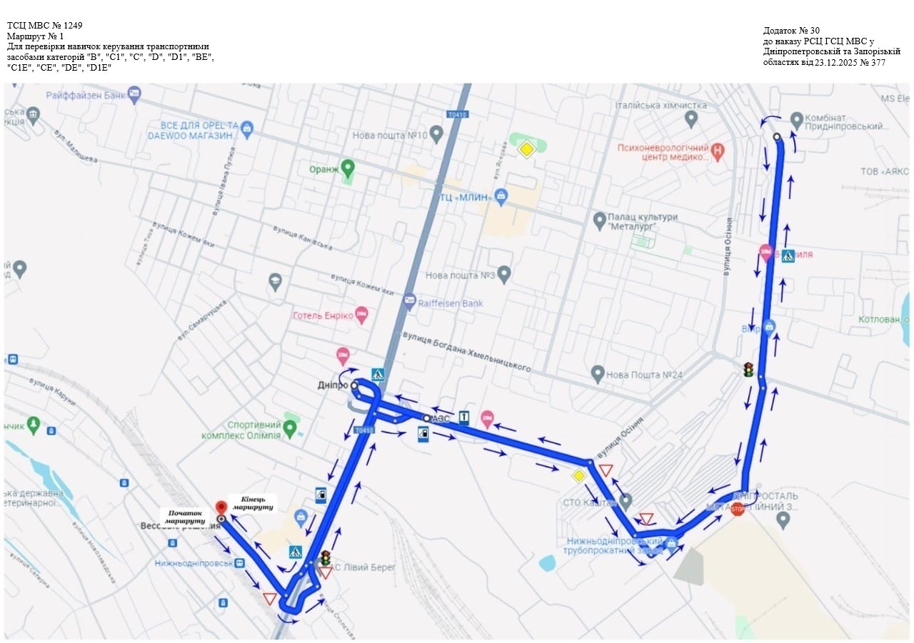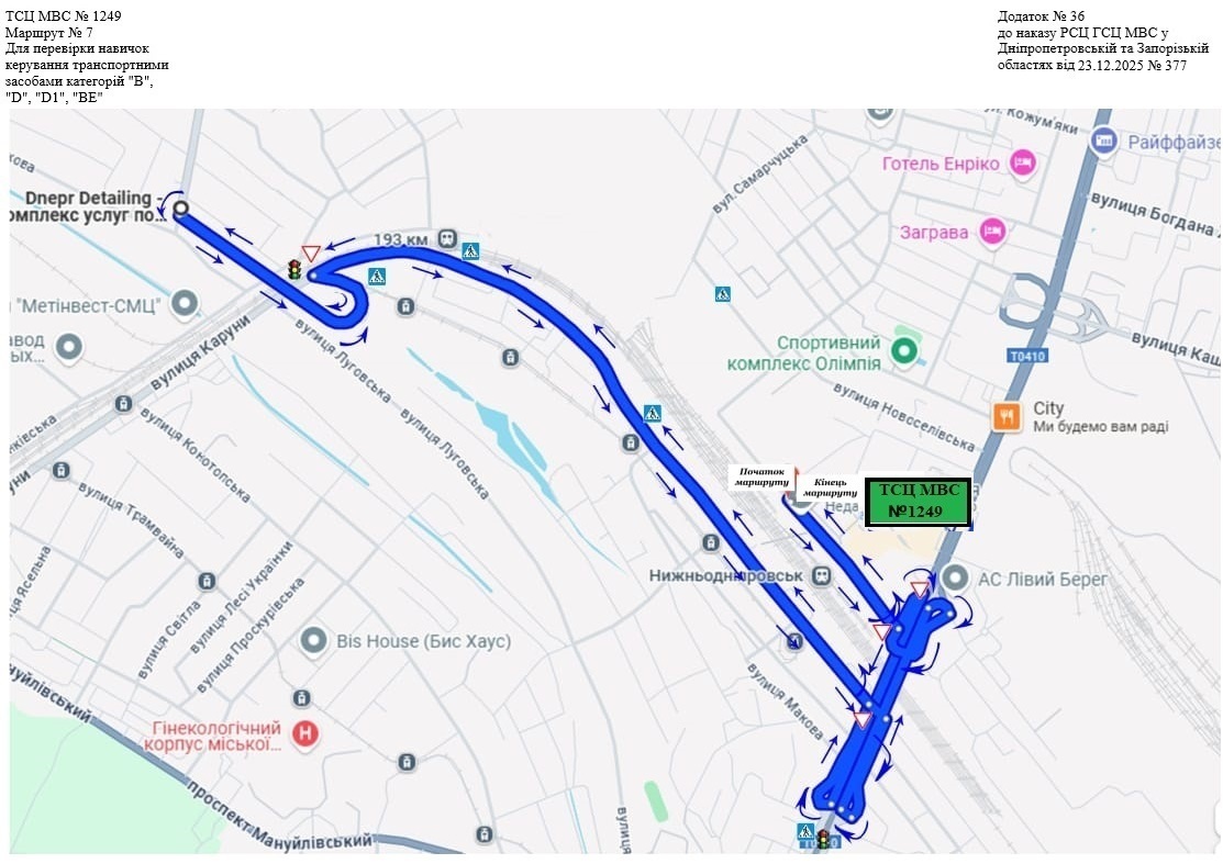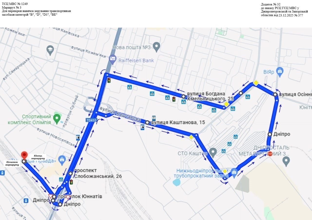 Маршрути для перевірки навичок керування транспортними засобами