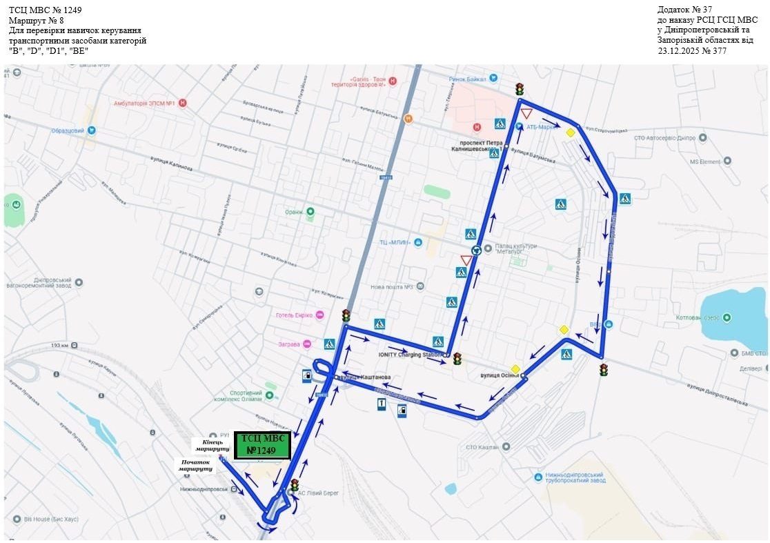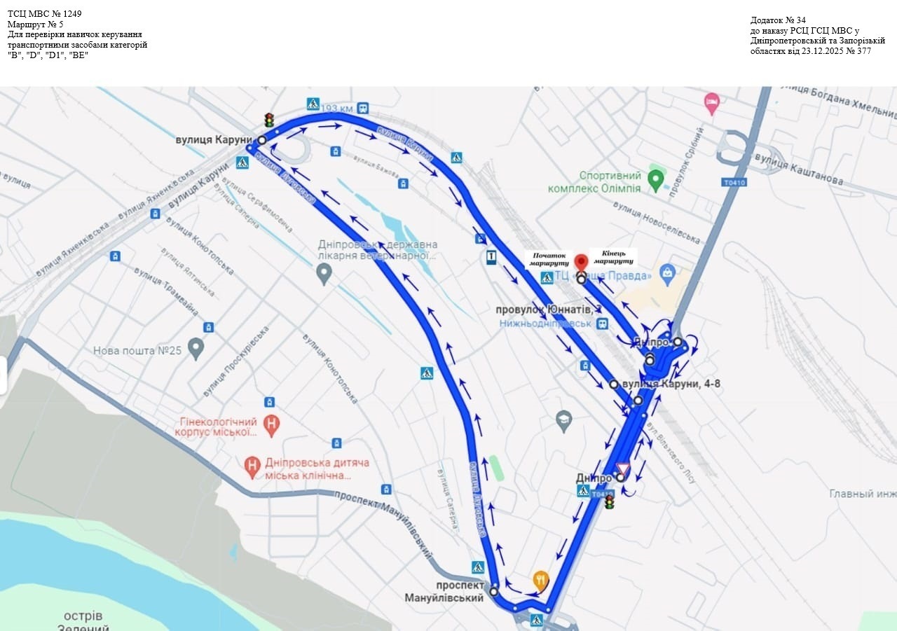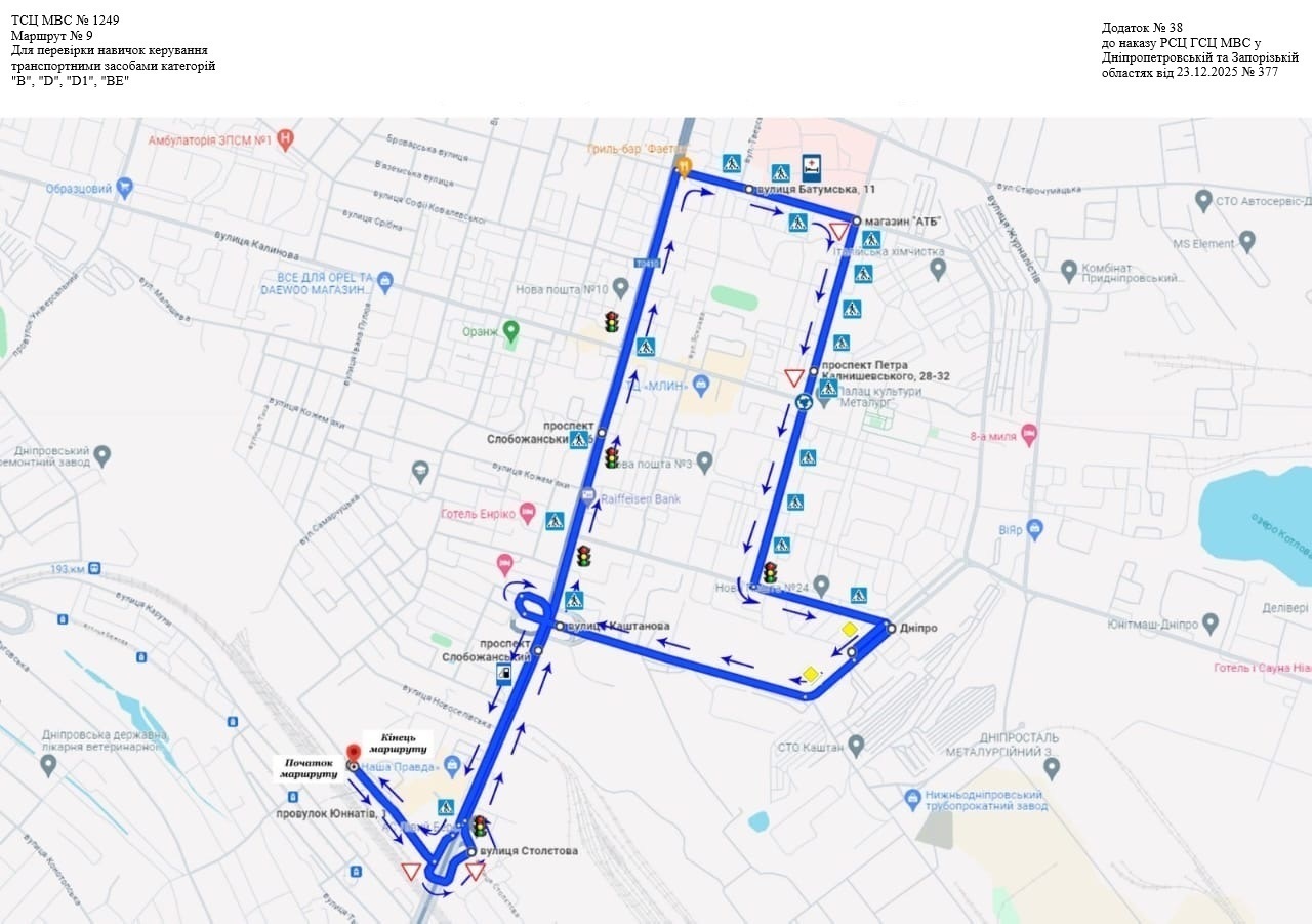 Маршрути для перевірки навичок керування транспортними засобами