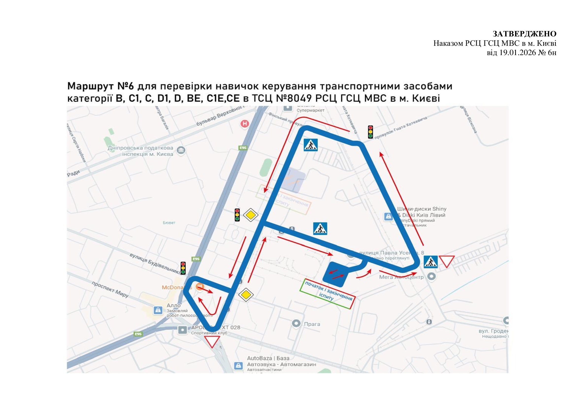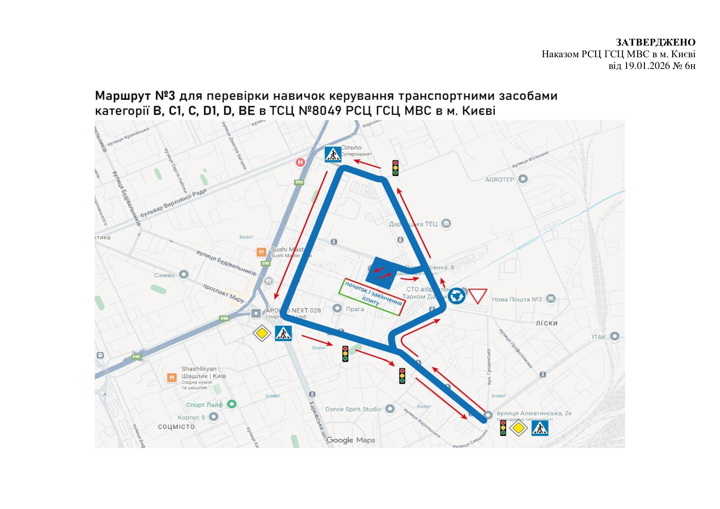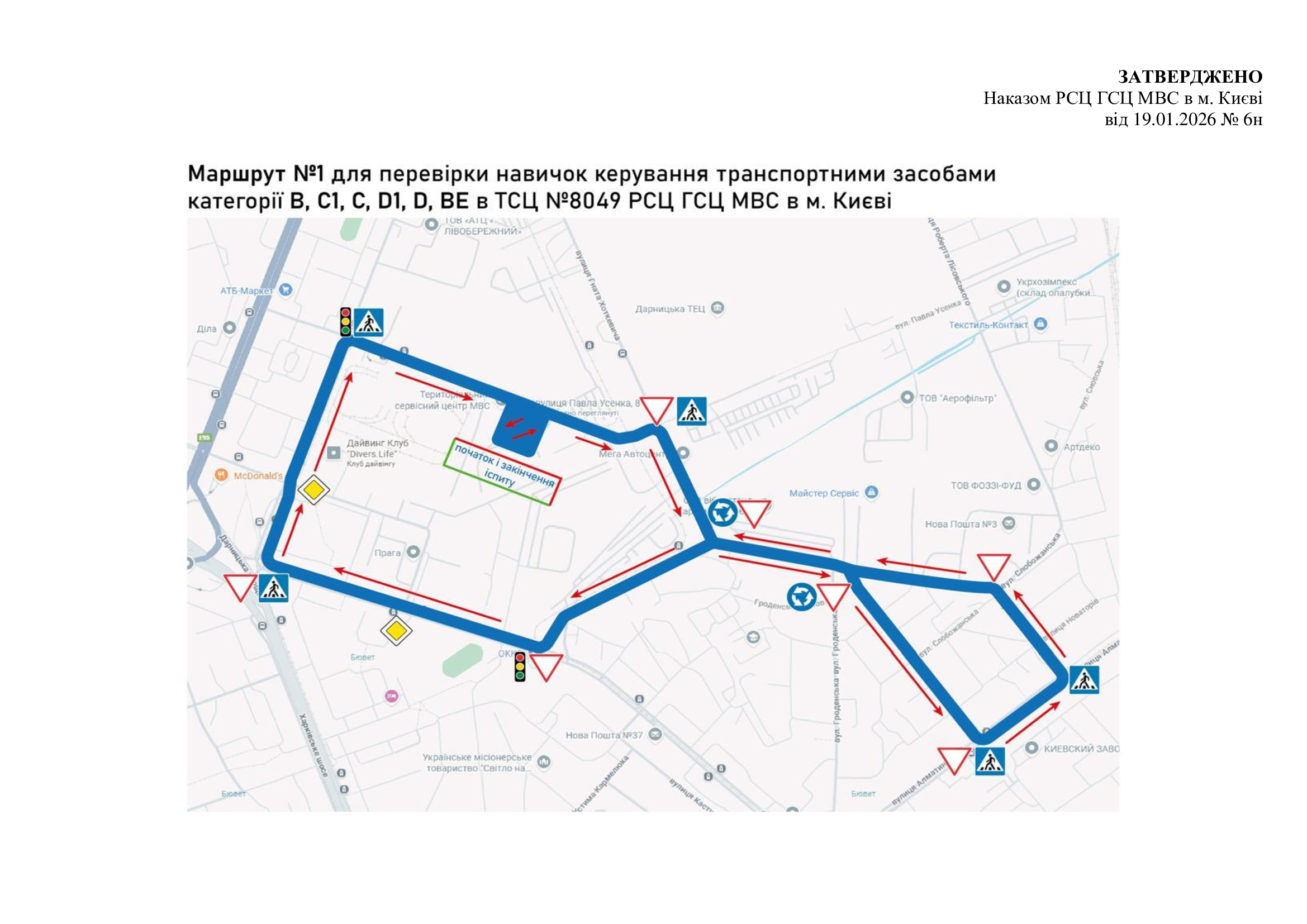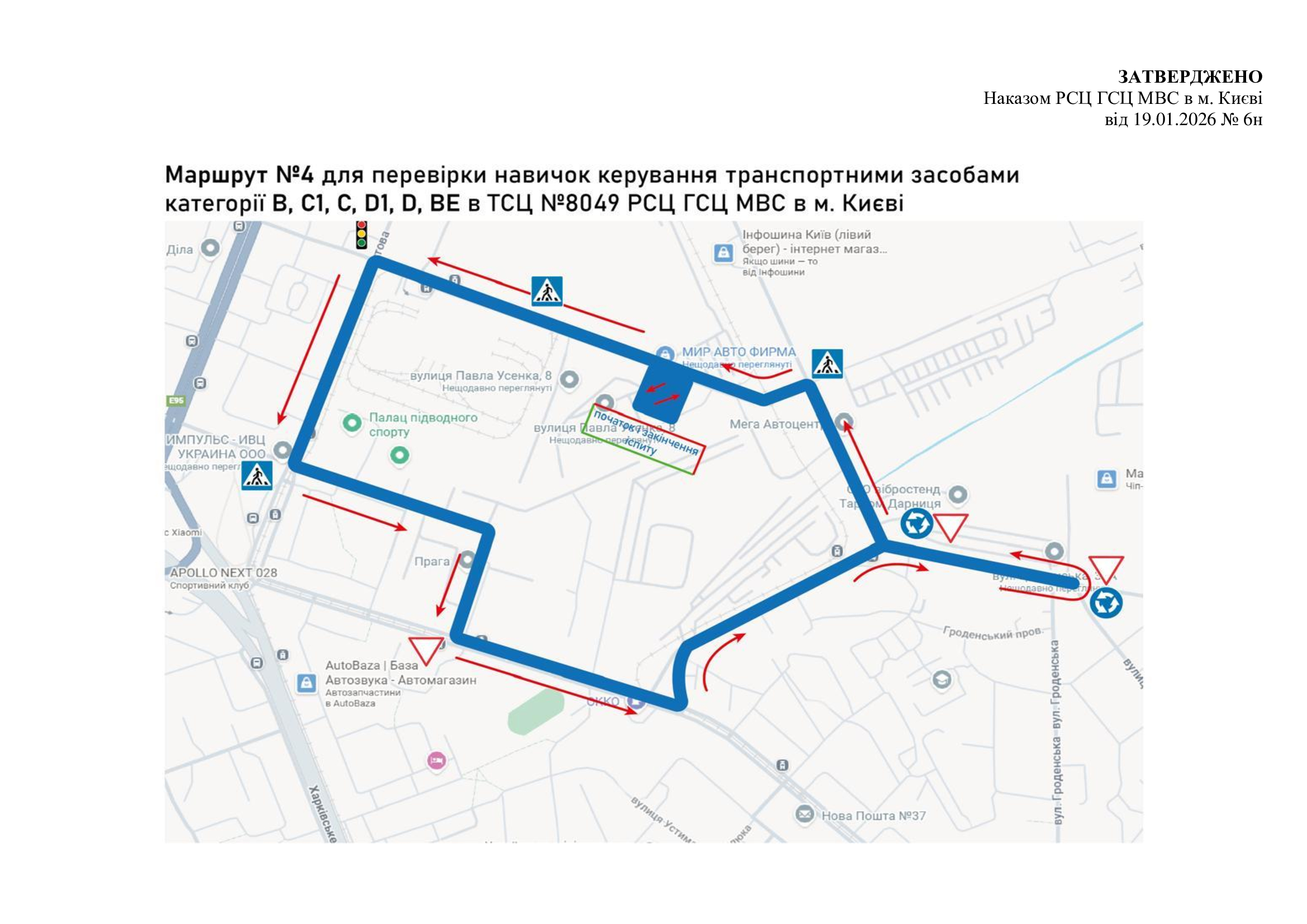 Маршрути для перевірки навичок керування транспортними засобами. м. Київ, вул. Павла Усенка, 8 (ТСЦ МВС № 8049)